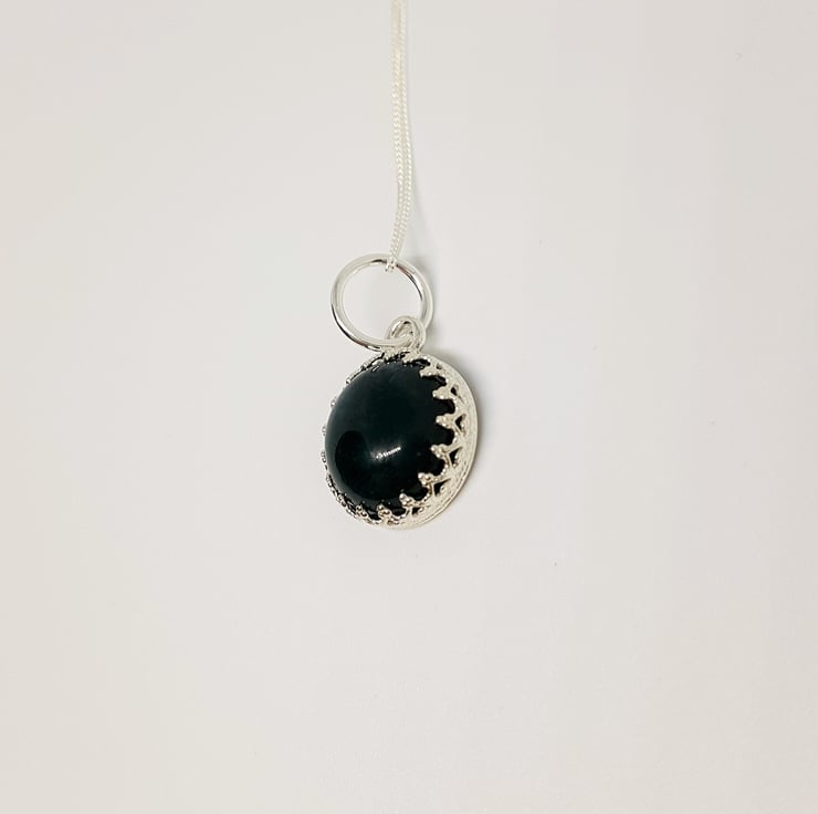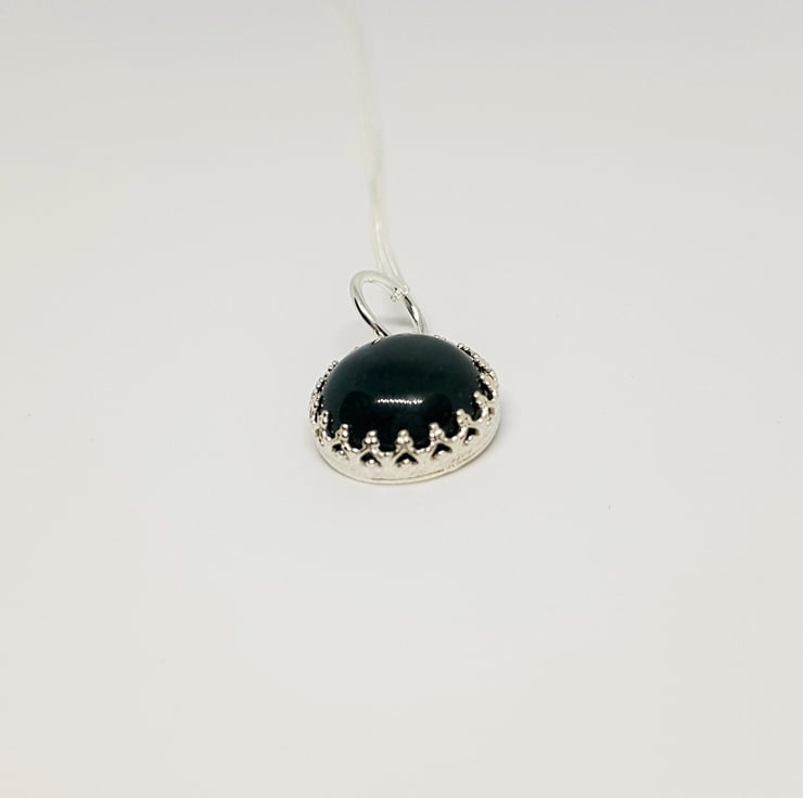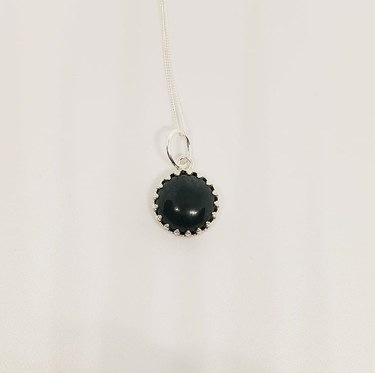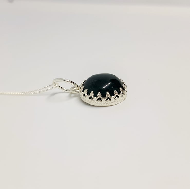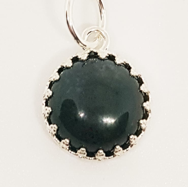 This gemstone is dark green moss agate. It s tricky to photograph, but in real life you can see the individual markings and striations which is where it gets the moss part of its name! It s a gorgeous, shade of green and quite unusual I think!