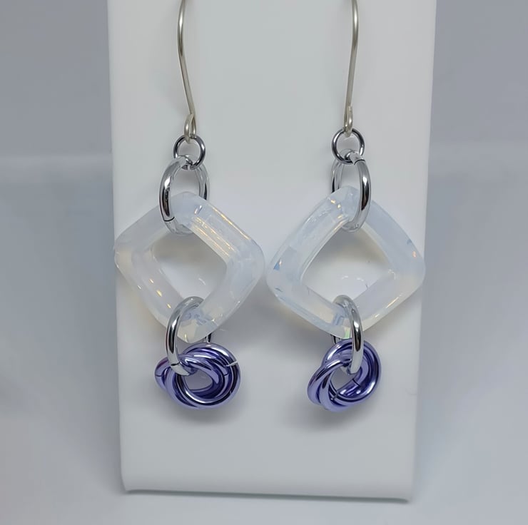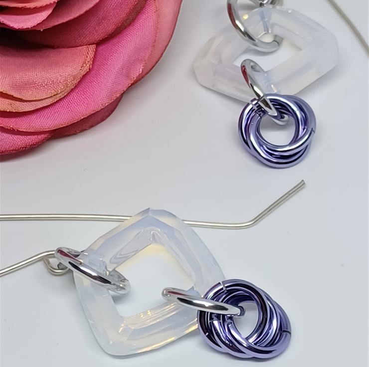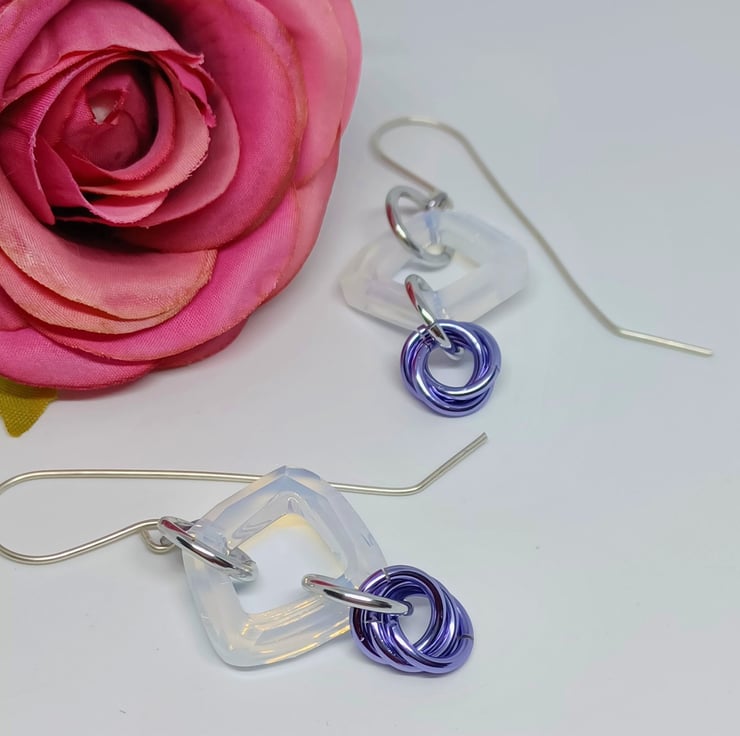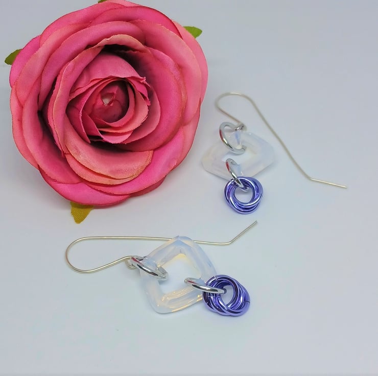 Purple Mobius Rose, and AB Crystal Chainmaille Sterling Silver Earrings