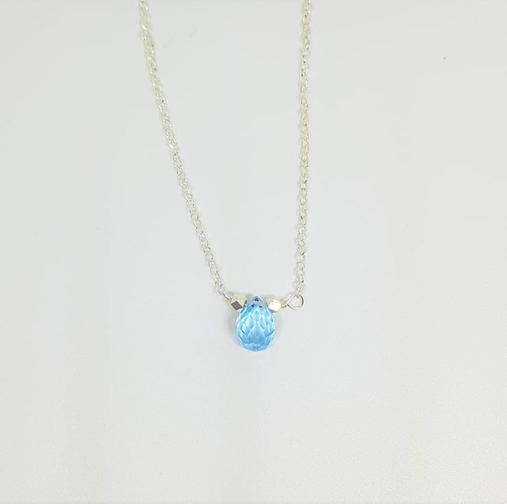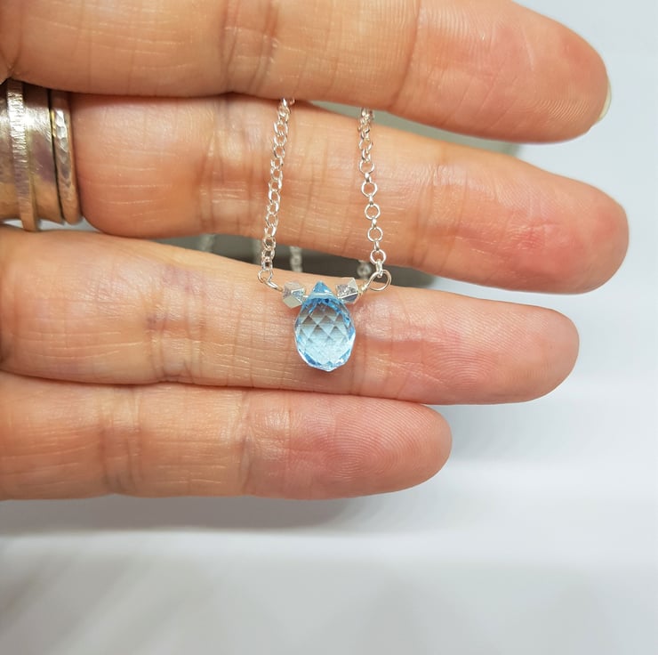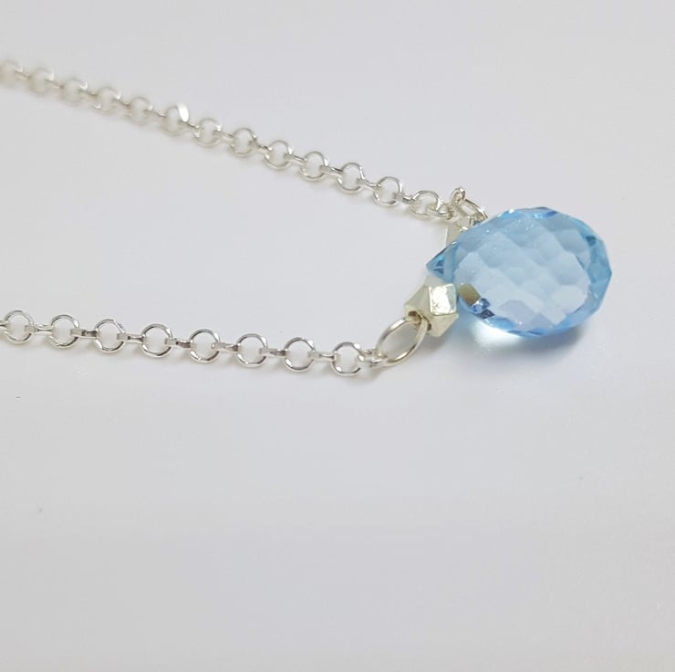 Sky Blue Faceted Topaz Necklace on Sterling Silver Chain, Elegant Topaz Pendant, December Birthstone Jewellery, Gift for Her, Teardrop Gem