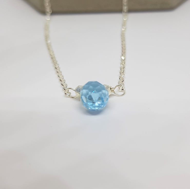 Add a touch of elegance to your jewellery collection with this stunning Sky Blue Faceted Topaz Necklace, With faceted sterling silver elements on either side, and beautifully set on a sterling silver chain. Perfect for any occasion, this exquisite piece captures the essence of sophistication and timeless beauty.
