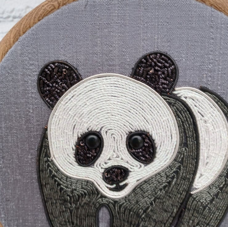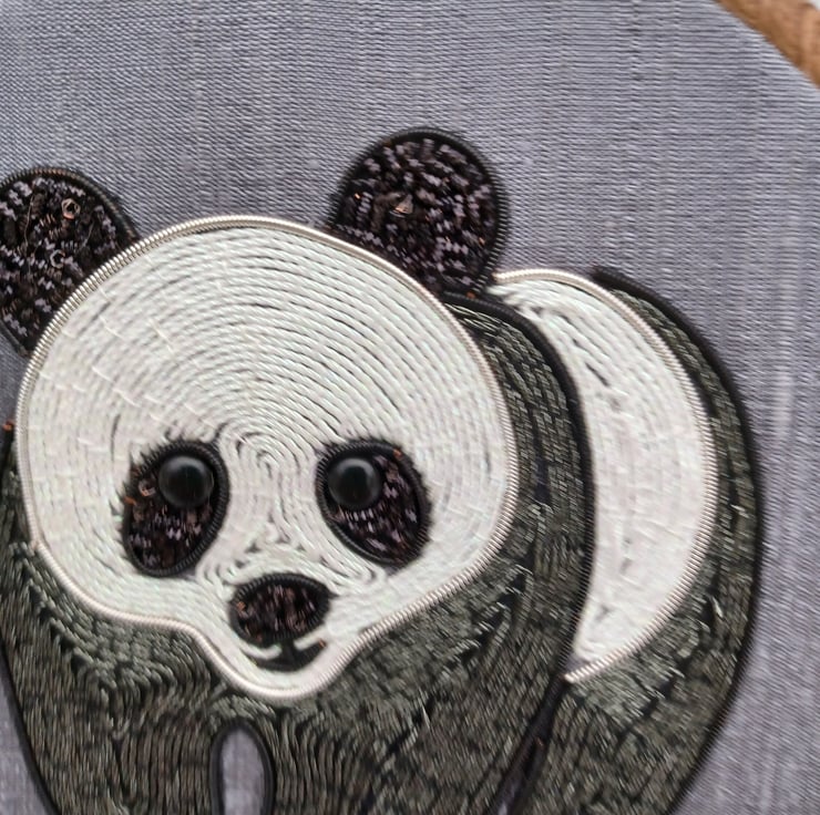 Artistic Detail: The intricate goldwork technique used in this embroidery gives the panda a lifelike and shimmering appearance that is both sophisticated and playful.