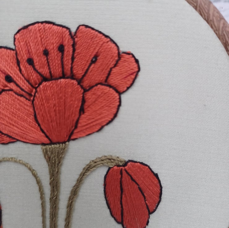 To maintain the beauty of your poppy embroidery, keep it away from direct sunlight and moistur