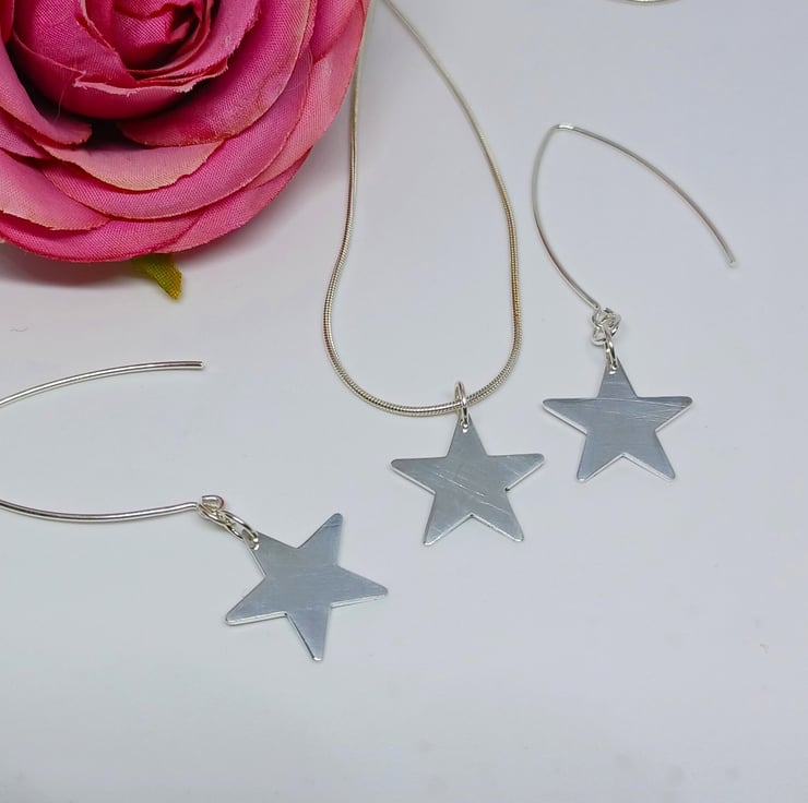 Sterling Silver Star Set, Silver Star Earrings, Silver Star Pendant, Necklace and Earring Set, Satin Silver Jewellery