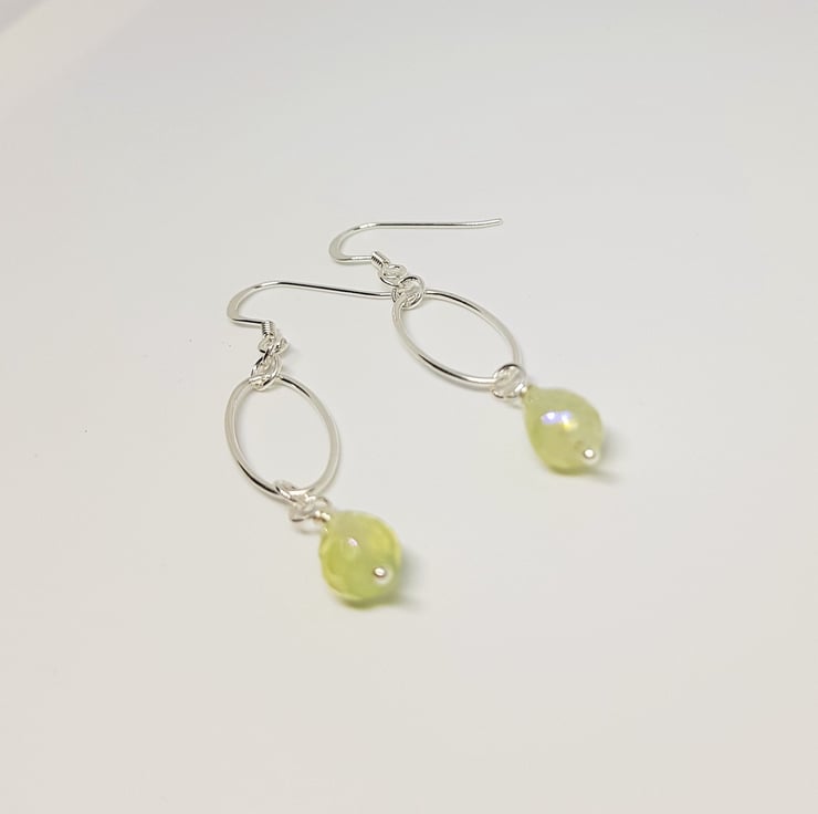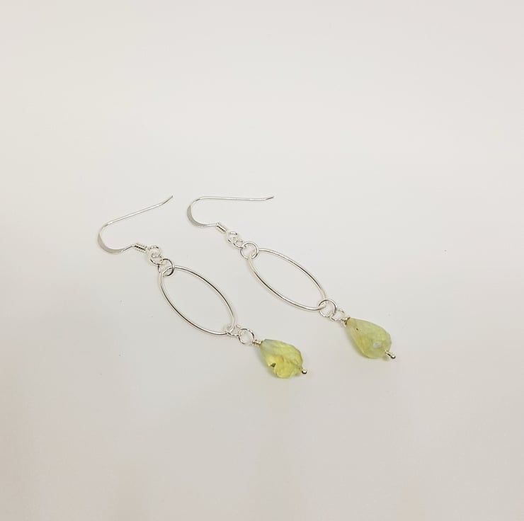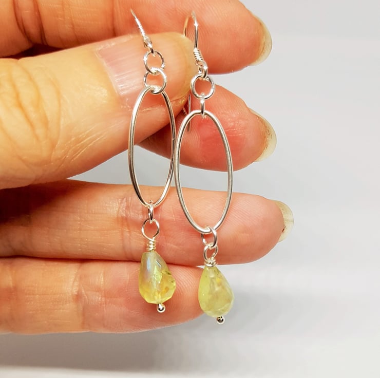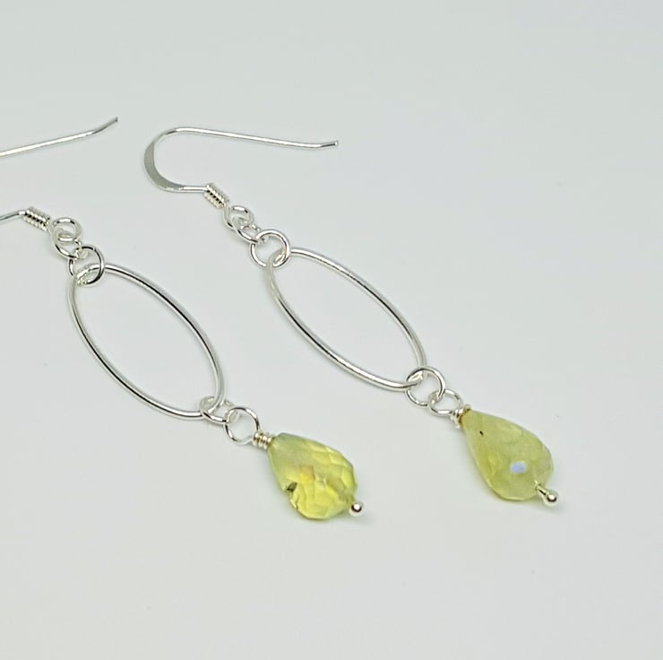 These earrings are so sparkly! They are prehnite faceted teardrops, suspended below a sterling silver oval, and sterling silver earwires. The prehnite is gorgeously sparkly but not too OTT!!!!