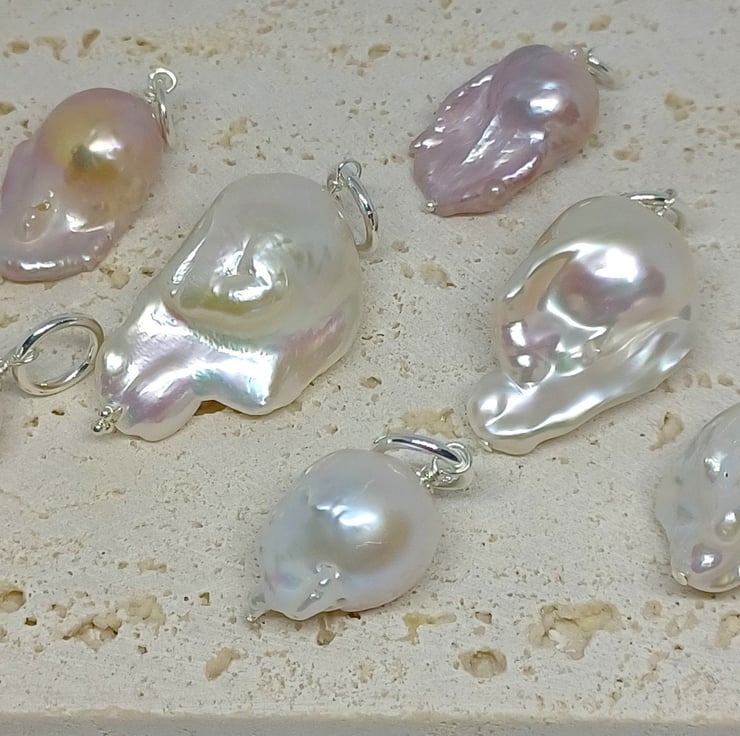 I love pearls and these make a stunning pendant that can literally be worn with anything. Pearls are always a classic, but the Baroque style of these make them modern and fun too. I have added them to substantial sterling silver findings to suit the size. These are supplied without a chain, as these could be added to a more substantial chain if you already have one.