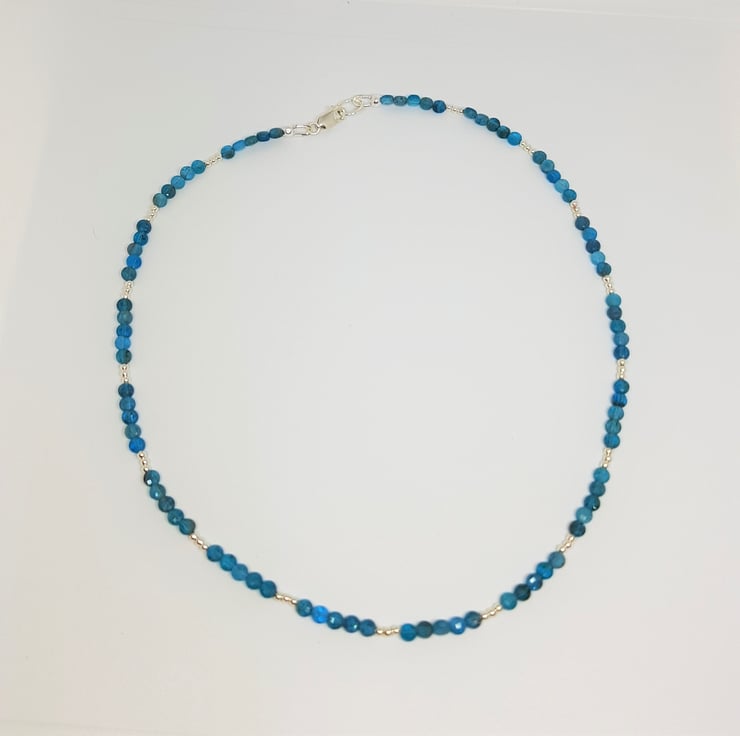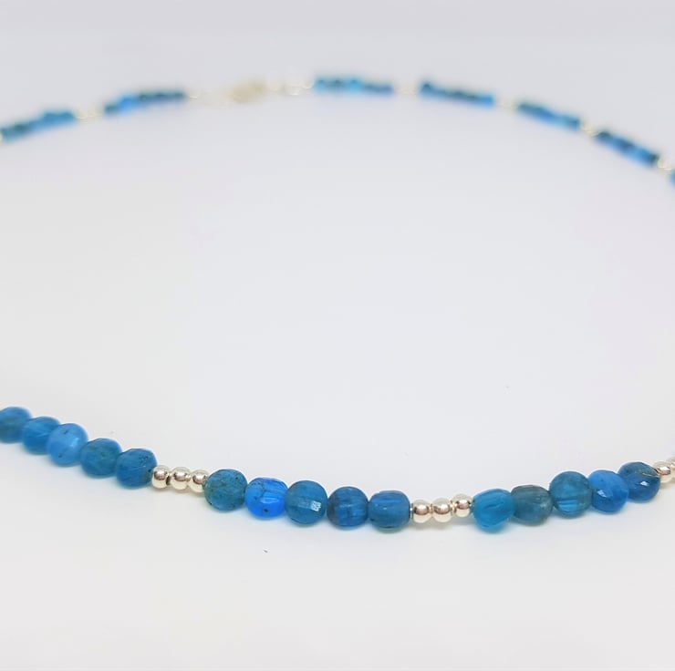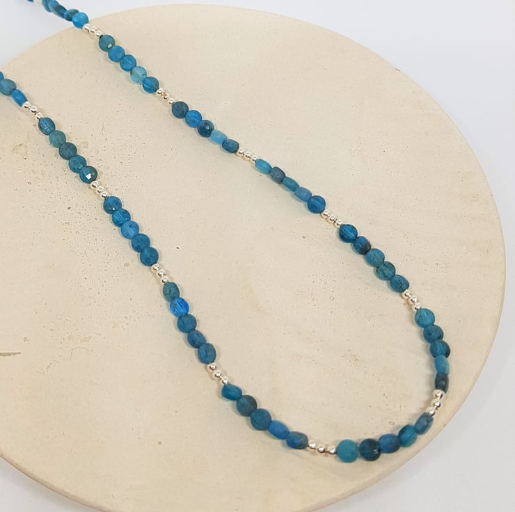 Peacock Apatite Coin Bead Gemstone and Sterling Silver Necklace, Gemstone Jewellery Gift for Her, Apatite Jewellery, Faceted Gemstone Gift