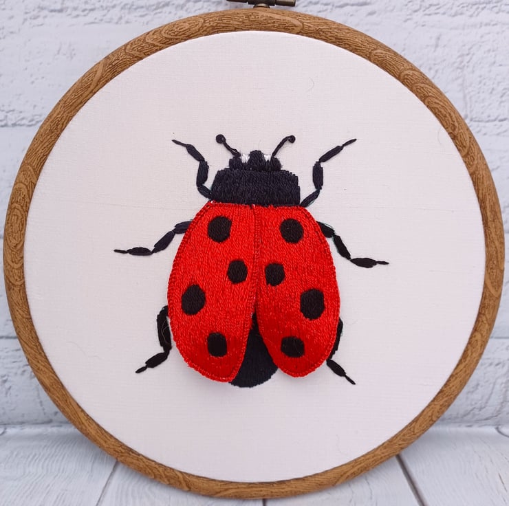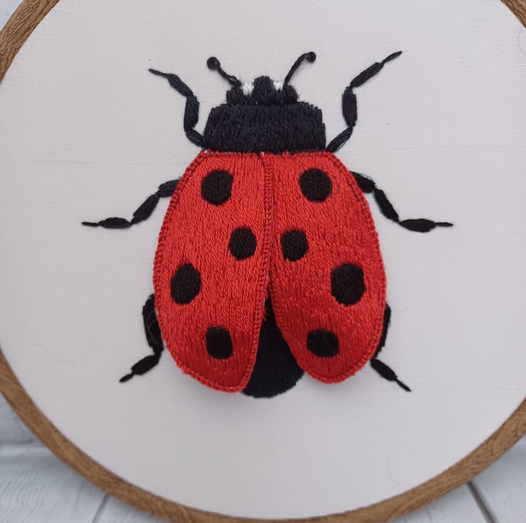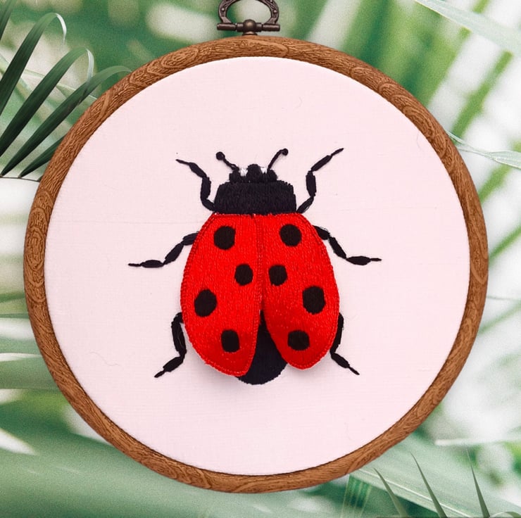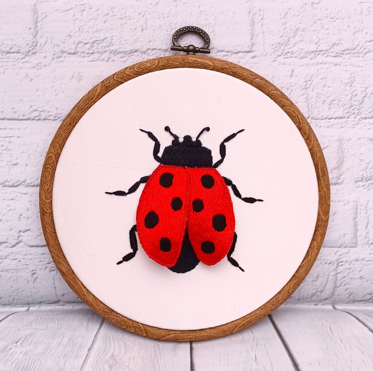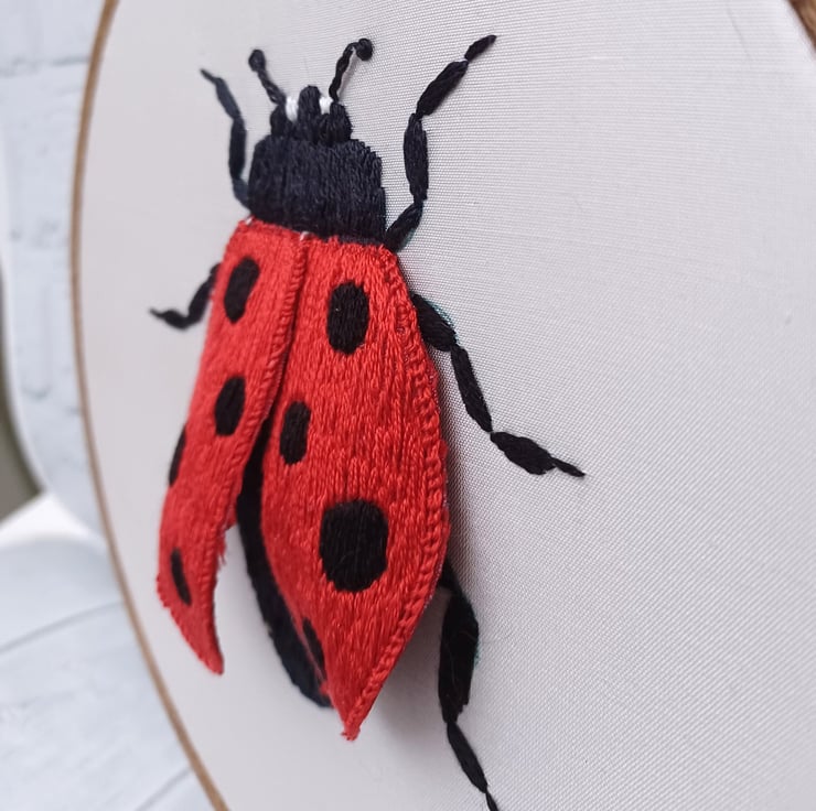 3D Ladybird Embroidery Wall Art, Stumpwork Embroidery Ladybird, Ladybird Wall Art for Conservatory, Ladybird Gift, Nature Lover Gift, Silk