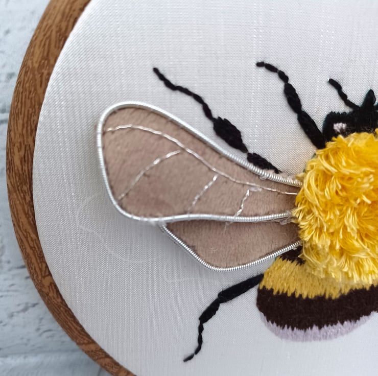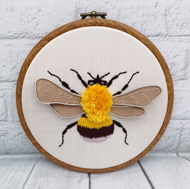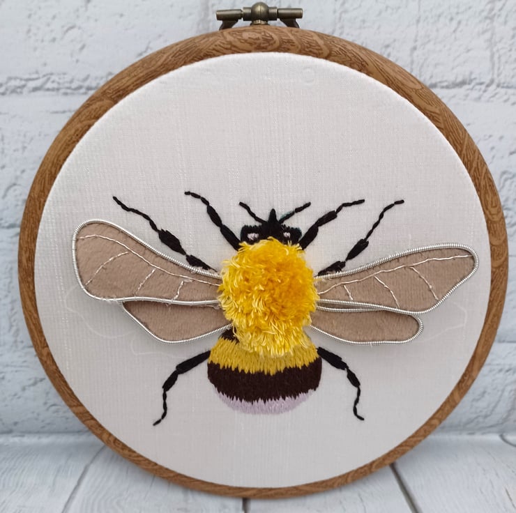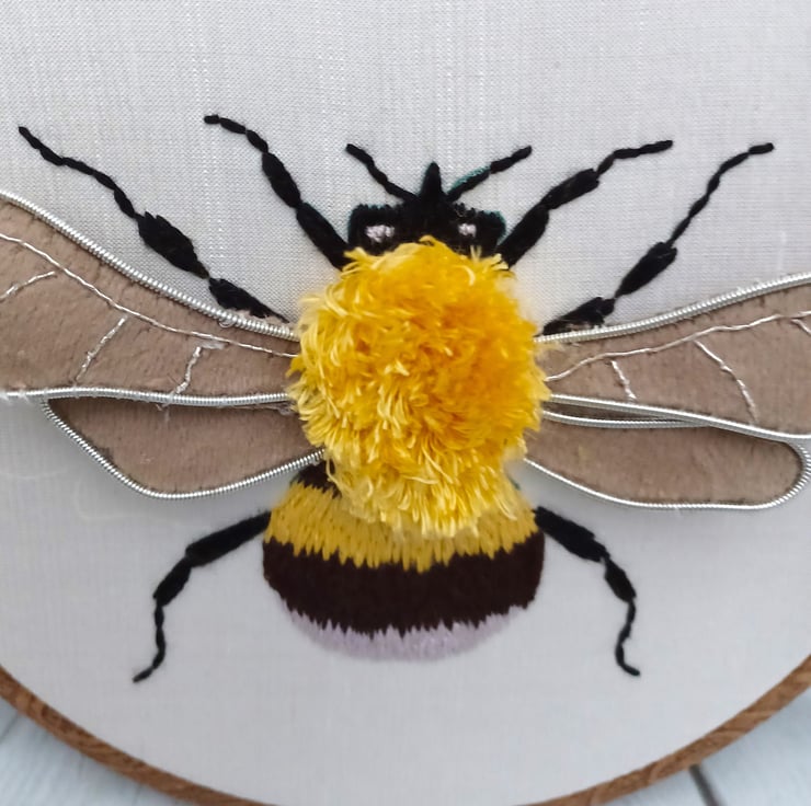 Bumblebee Embroidery, Bee Embroidery Art, 3D Bee, Stumpwork Embroidery Bee, Fuzzy Bee, Bee Gift, Bee Lover, Poseable Embroidery, Bee Art