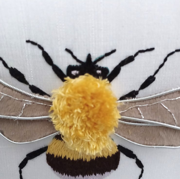 I love bees - they are one of my favourite things to embroider, and this bee has a fuzzy body!