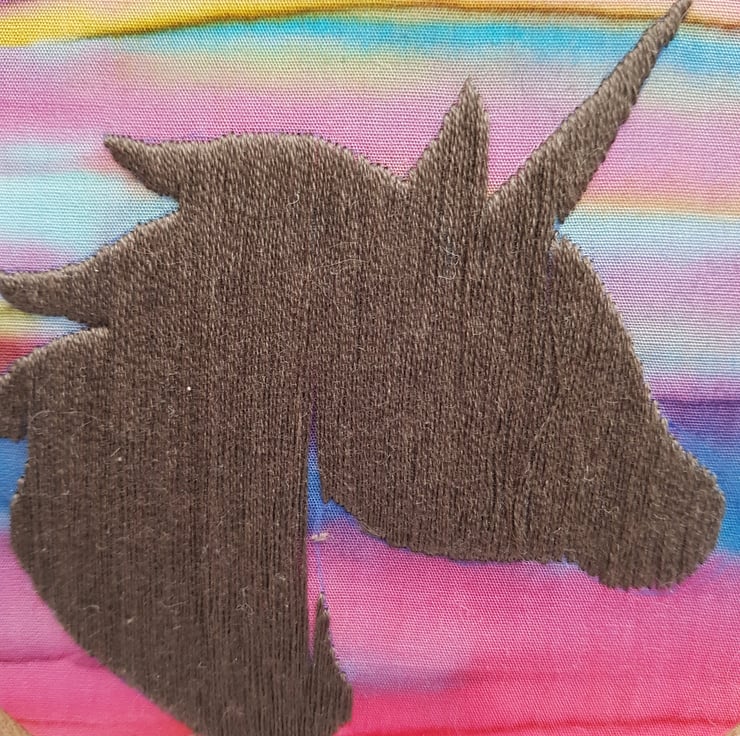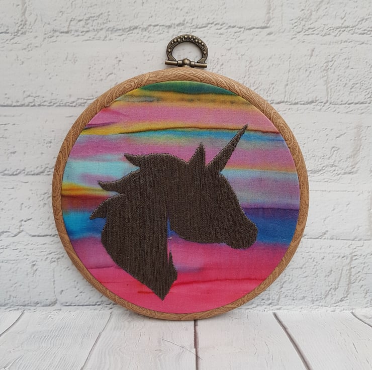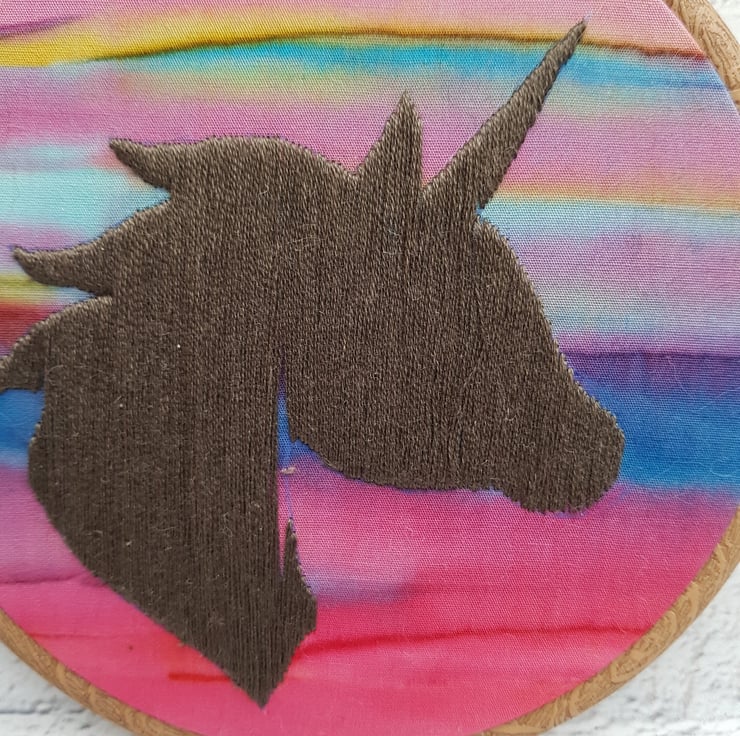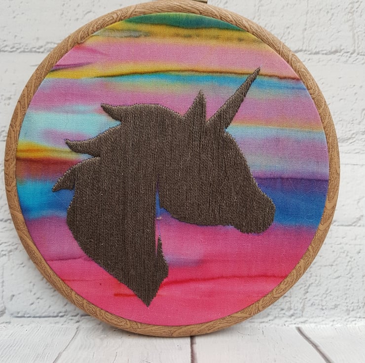 Unicorn Silhouette Completely hand embroidered onto this gorgeous sunset coloured fabric.