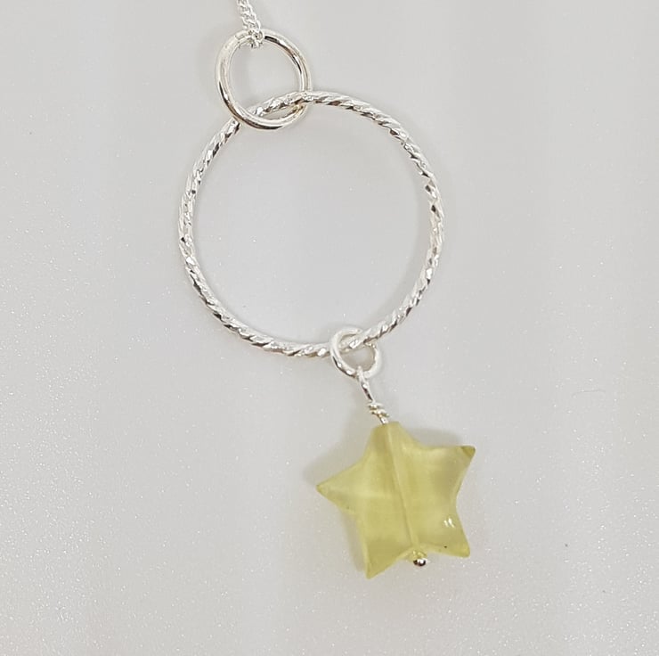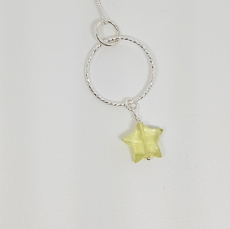 Lemon Quartz Star and Sterling Silver Sparkly Ring Gemstone Necklace