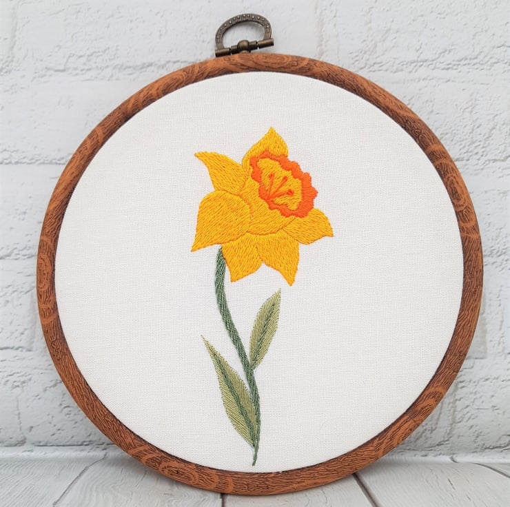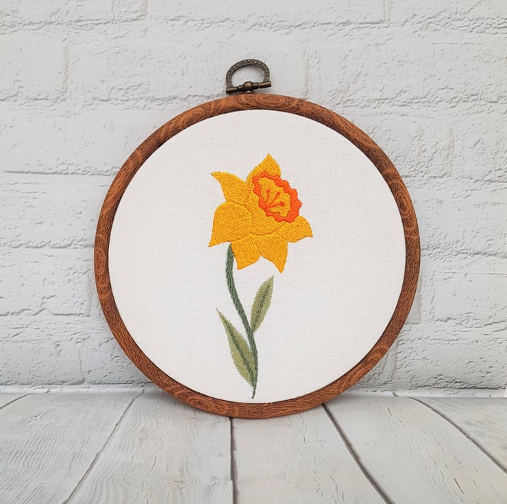 Daffodil Hand Embroidery Hoop, Flower Embroidery, Floral Wallart Gift for Mum, Spring Flower Embroidery, Gift for Gardeners, Daffodil Art