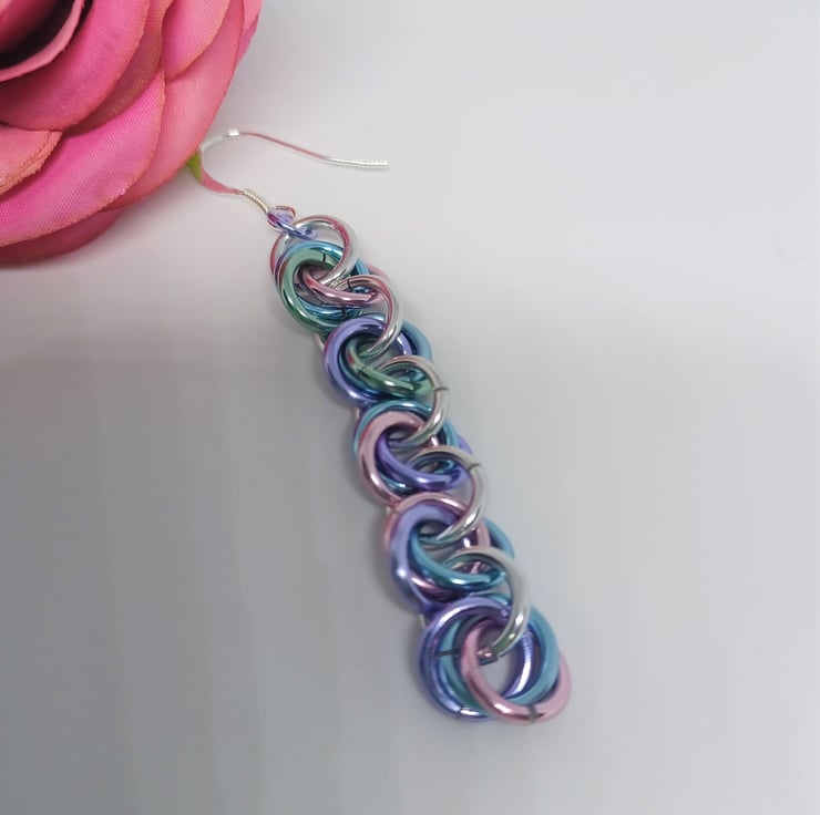 Unicorn Pastel Coloured Mobius Rose Chainmaille Sterling Silver Earrings
