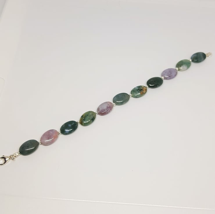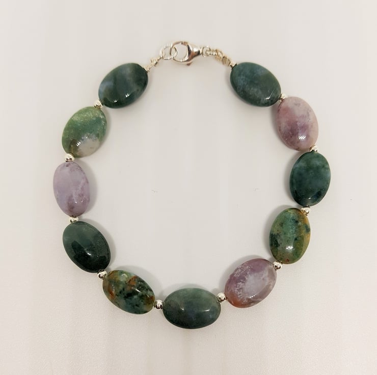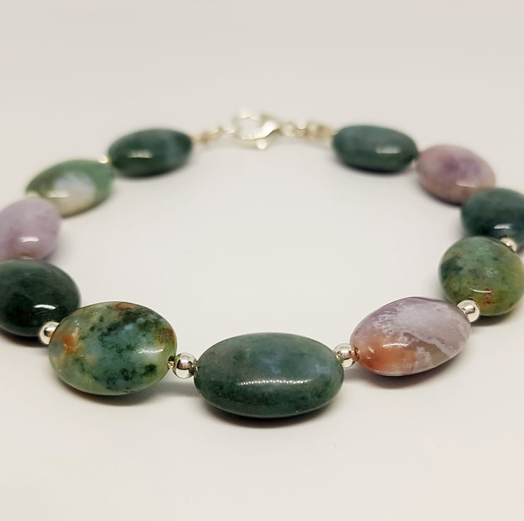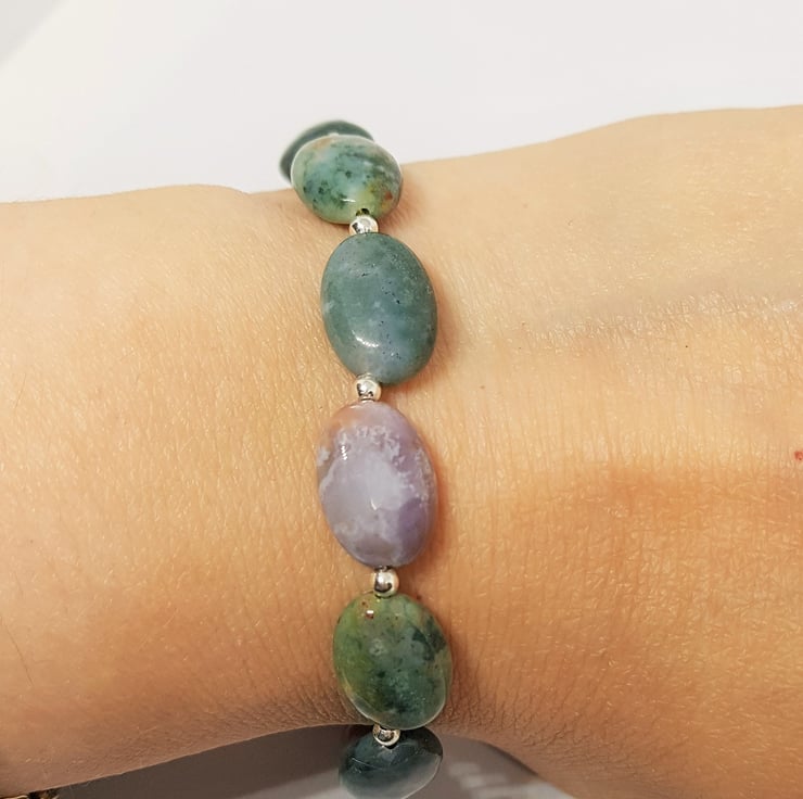 Green Agate Bracelet, Purple Agate Bracelet, Multi Colour Agate Bracelet, Sterling Silver Bracelet, Gemstone Bracelet