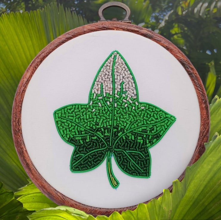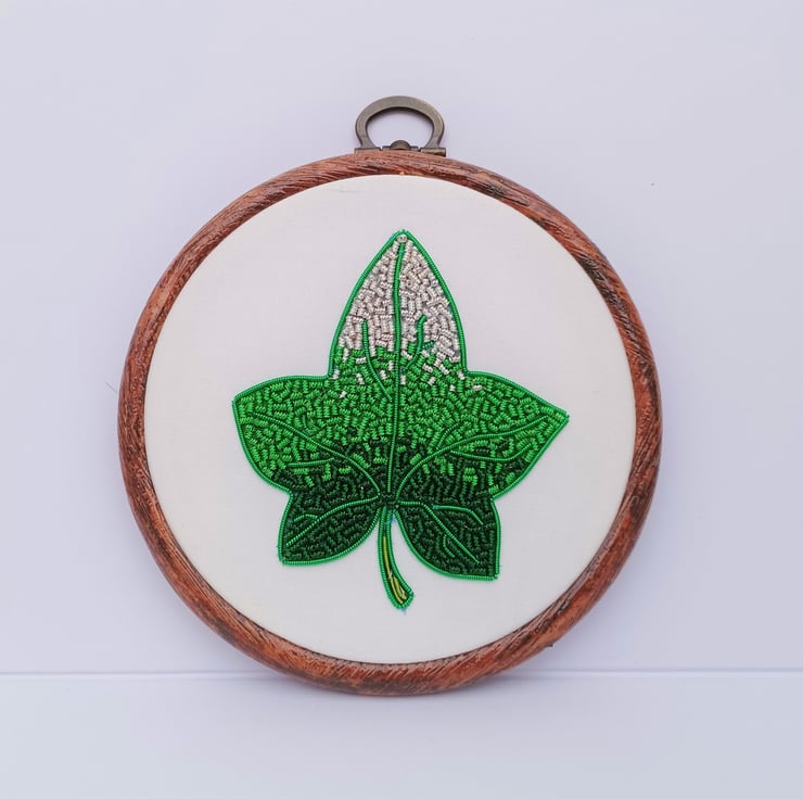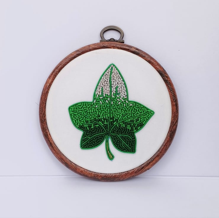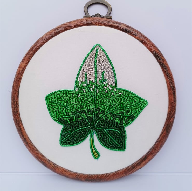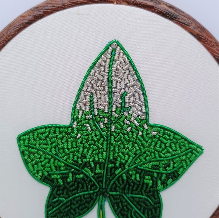 Goldwork Ivy Leaf Embroidery Hoop, Hand Embroidery, Ivy Embroidery, Leaf Embroidery, Metalthread Embroidery