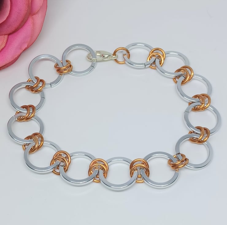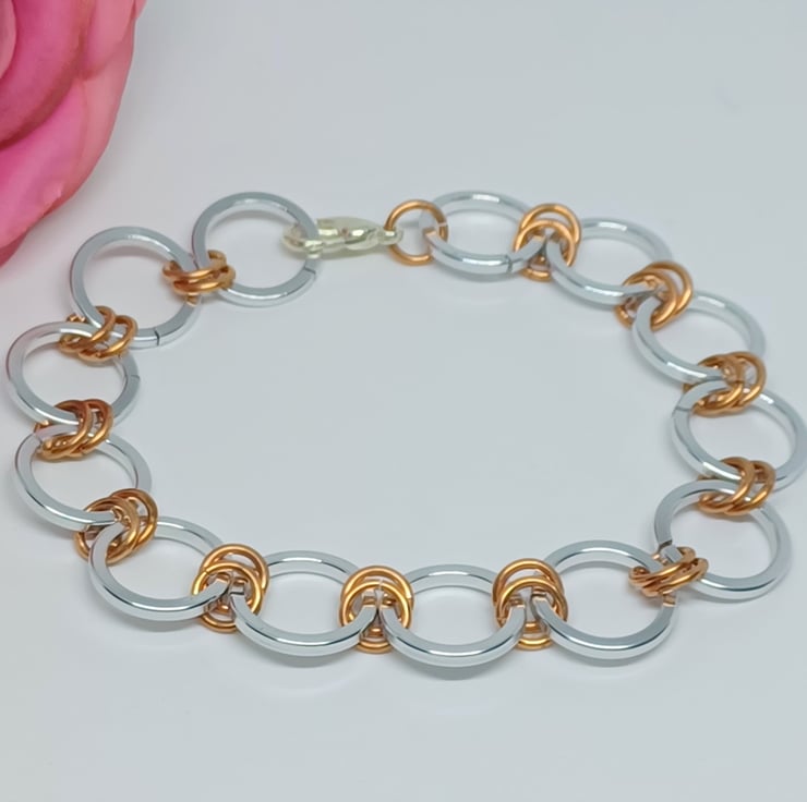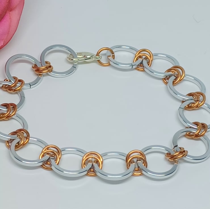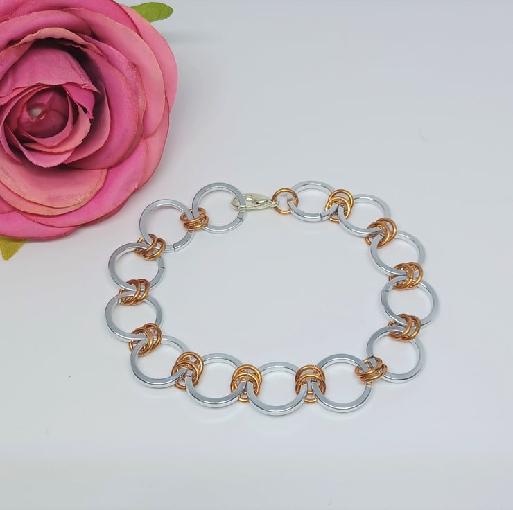 Silver and Copper Colour Anodized Aluminium Square Wire Chainmaille Bracelet