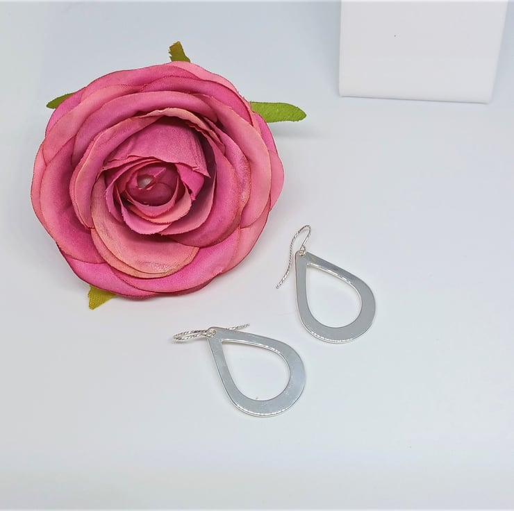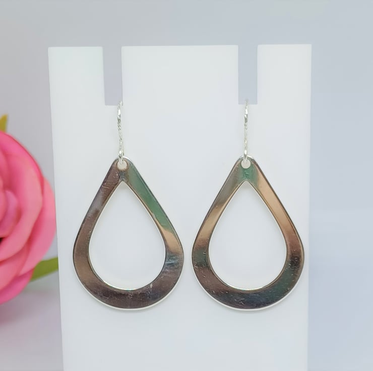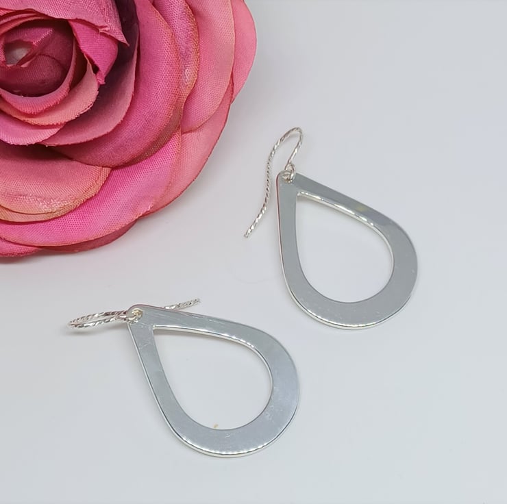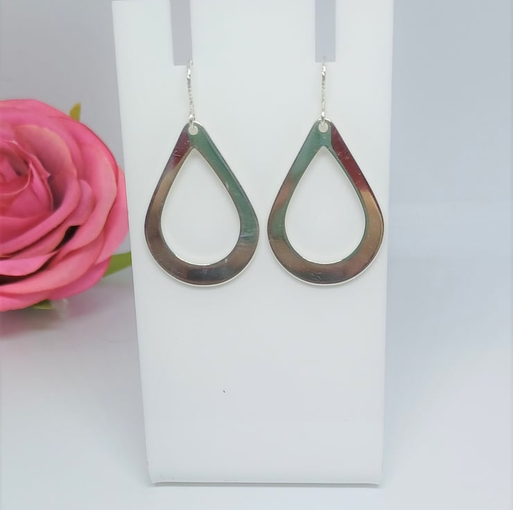 Sterling Silver Cut Out Open Teardrop Dangle Earrings