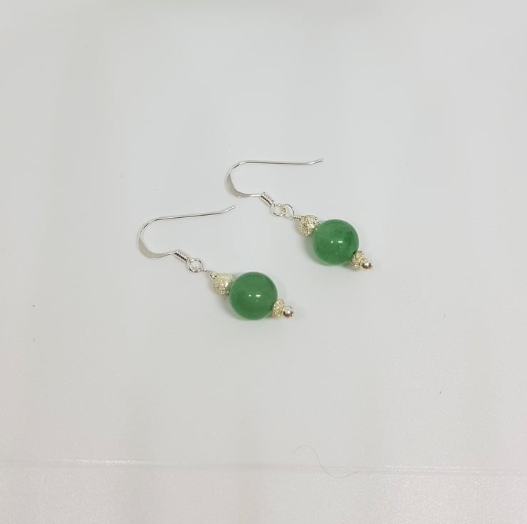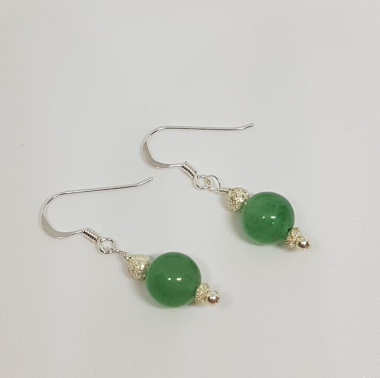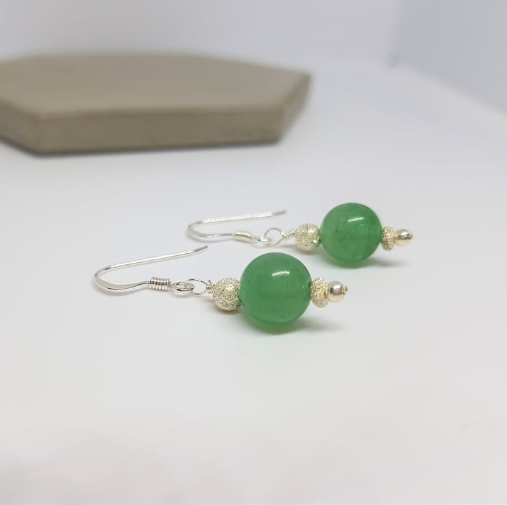 Aventurine Gemstone and Sterling Silver Sparkly Drop Earrings