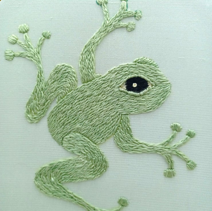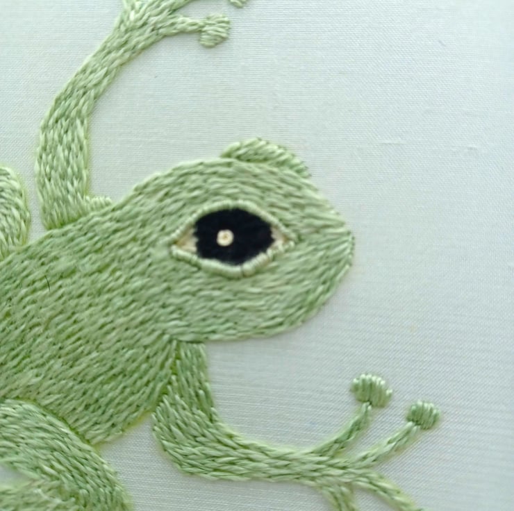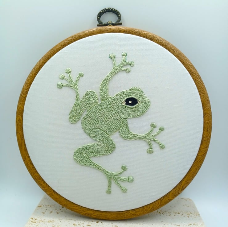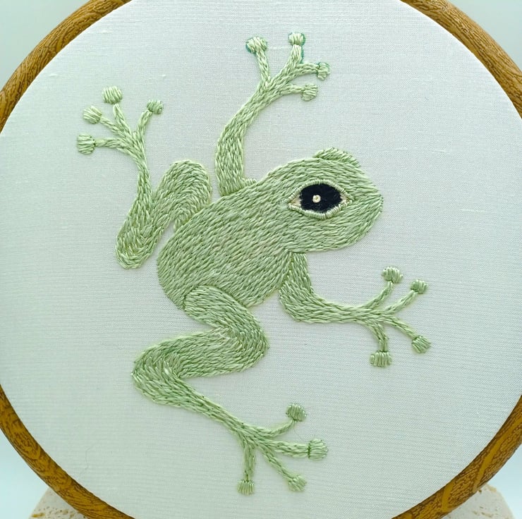Tree Frog Embroidery Hoop, Hand Embroidered Hoop Art, Green Frog Gift for Her, Nursery Gift, Amphibian Embroidery Gift, Silk Thread Frogg