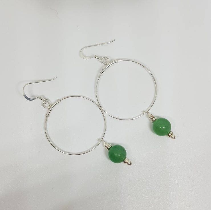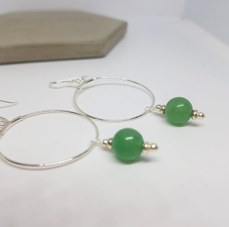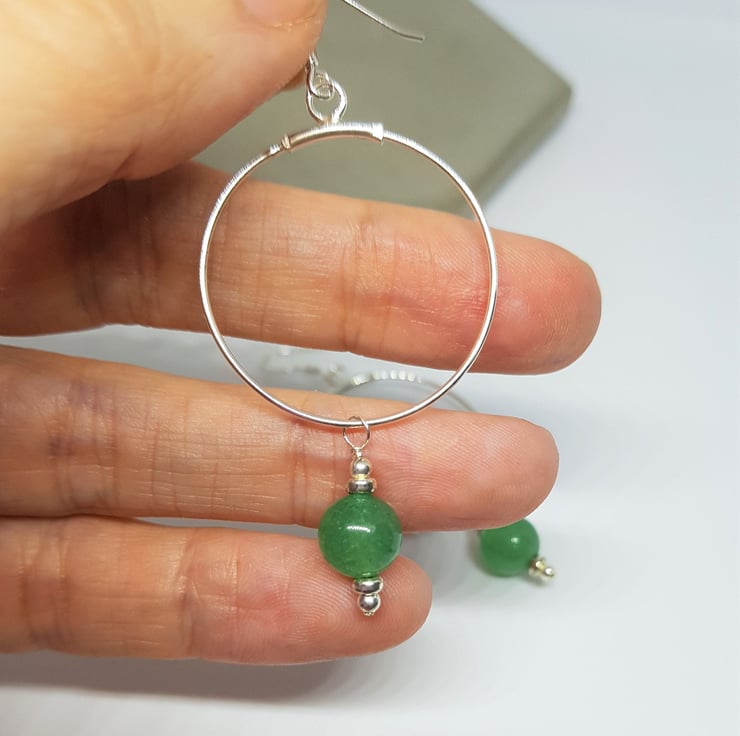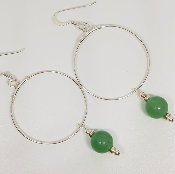 Green Aventurine and Silver Hoop Earrings.