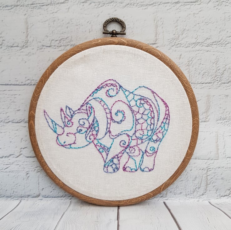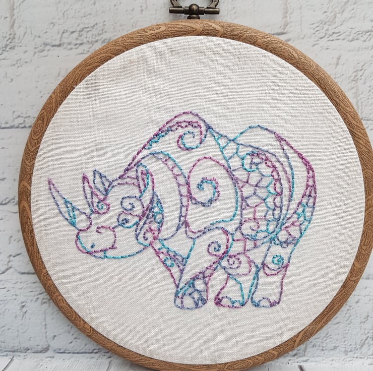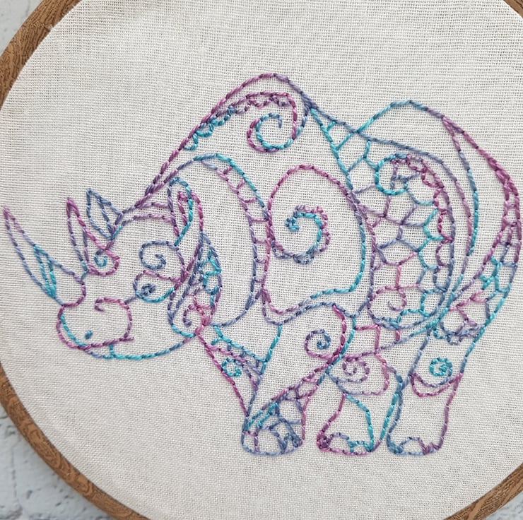 Rhino - Part of my Endangered Species range - all hand embroidered using hand dyed variegated thread from South Africa. The colours on these are beautiful!
