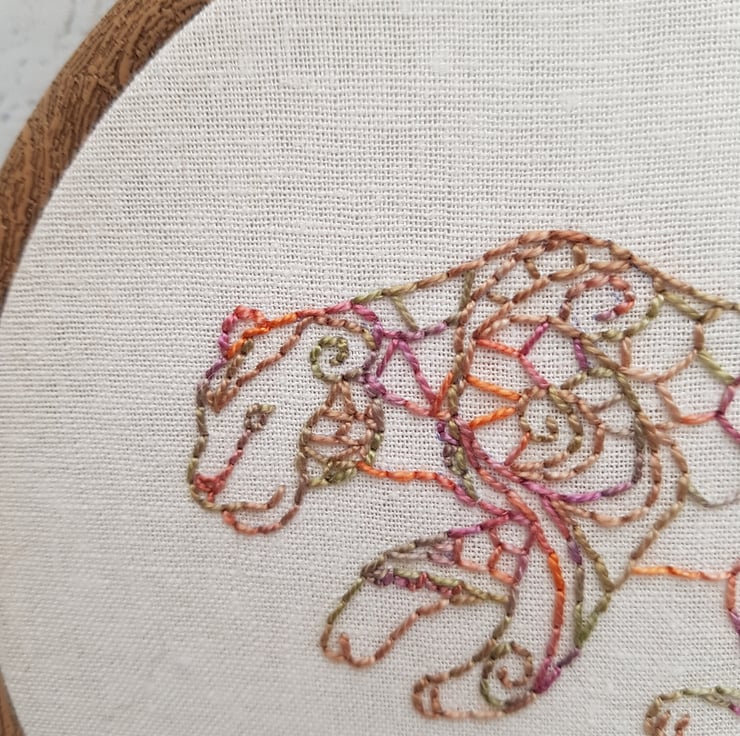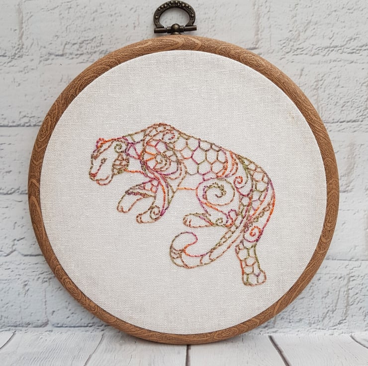 Leopard - Part of my Endangered Species range - all hand embroidered using hand dyed variegated thread from South Africa. The colours on these are beautiful!