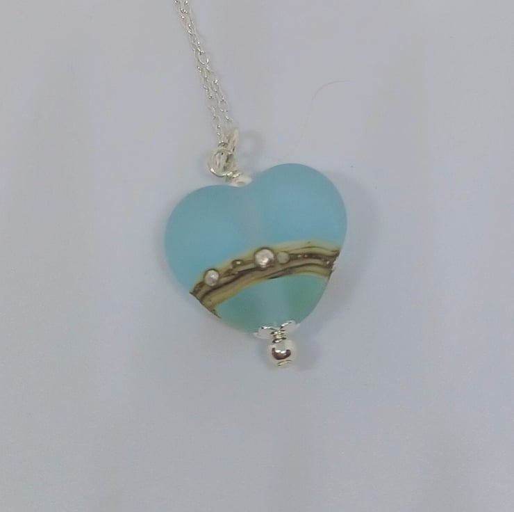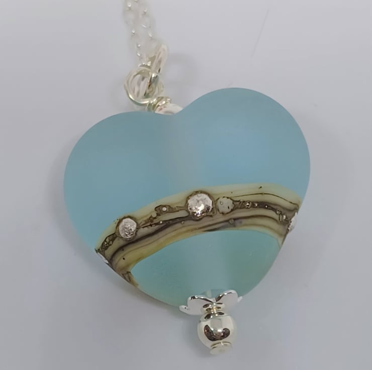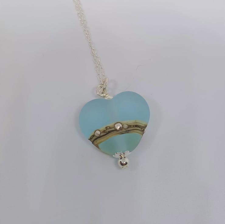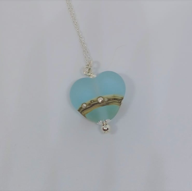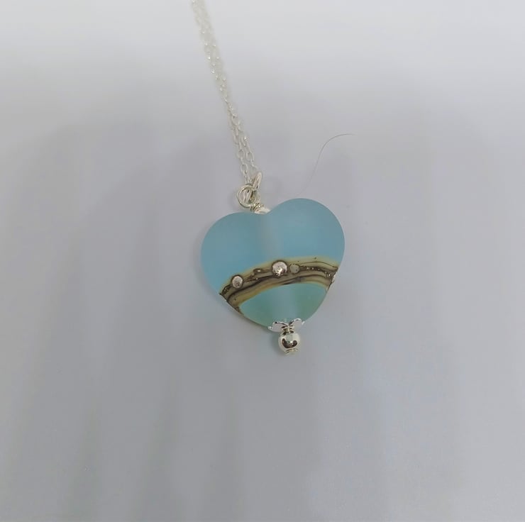 Light blue Lampwork Glass Heart Focal Bead Necklace on sterling silver chain, Glass Heart Pendant