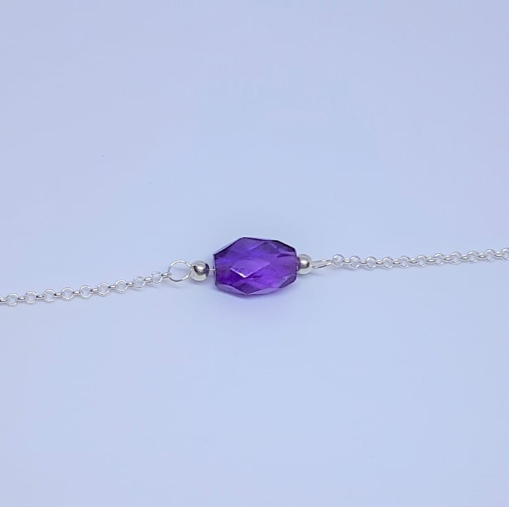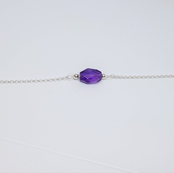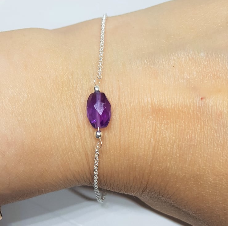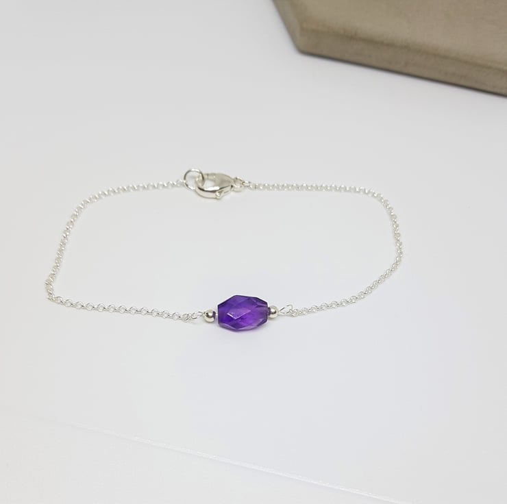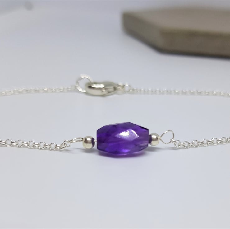 Amethyst and Sterling Silver Bracelet, Silver Jewellery Gift for Her, Faceted Amethyst Jewellery, Purple Amethyst Gift, Stacking Bracelet