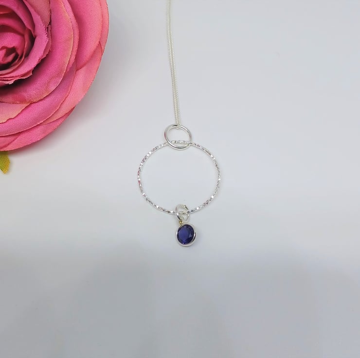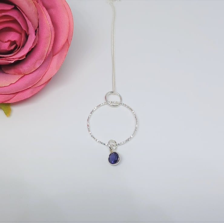 Iolite Faceted Gemstone Drop Pendant, Sterling Silver Pendant, Textured Silver Pendant, Iolite Sterling Silver Pendant