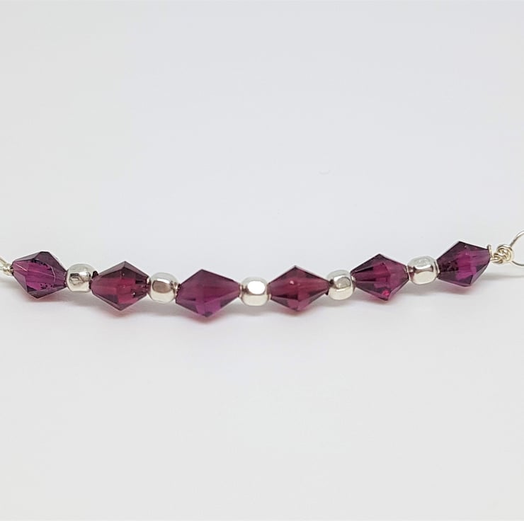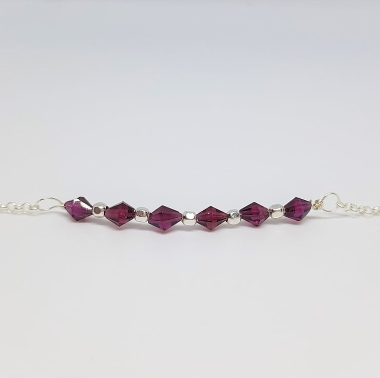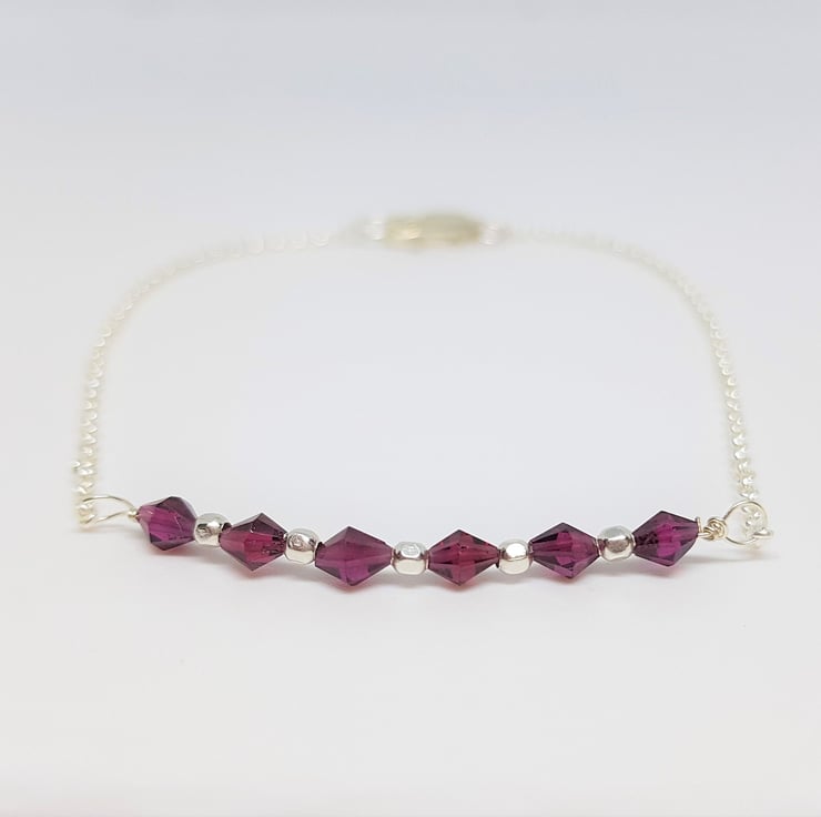 Faceted Garnet Bicone Sterling Silver Gemstone Bar Stacking Bracelet
