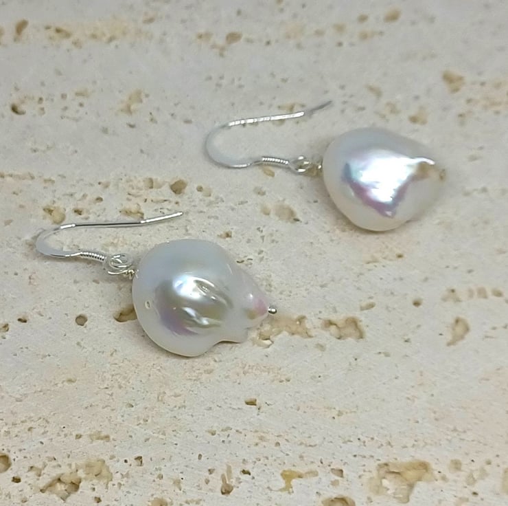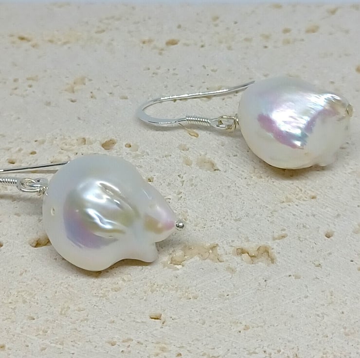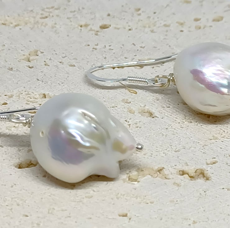 White Pearl Earrings, Baroque Pearl Earrings, Fireball Pearl Earrings, Statement Earrings, Sterling Silver Earrings, June Birthday Gift