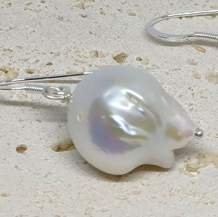 These gorgeous earrings would be a perfect combination with my matching pendants, but are equally stunning on their own. They are all a substantial size (between 20-35mm) and they have the most gorgeous colour and lustre I have seen in a long while. Pearls are always a classic, but the Baroque style of these make them modern and fun too. I have added them to substantial sterling silver findings to suit the size. I have these pearls paired together to get the best possible match. This is not the pair you will receive, as each pair will be different, but they are all gorgeous. I have these available as a longer earwire in my shop.
