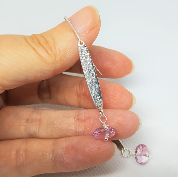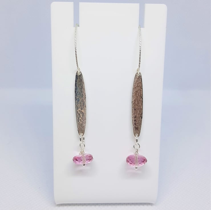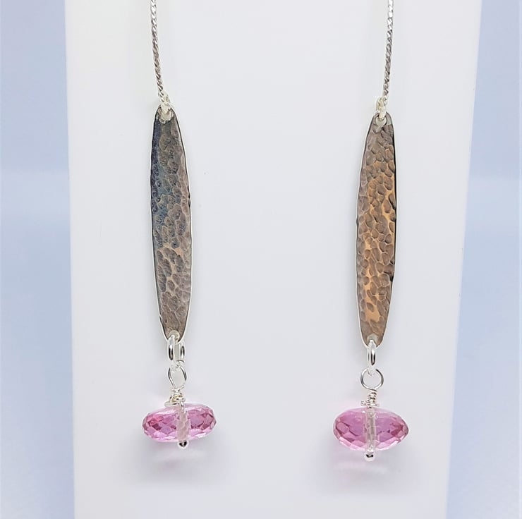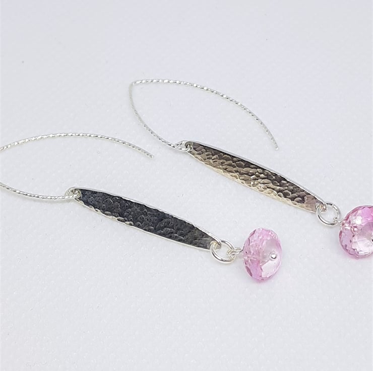 Pink Topaz Faceted Discs with Hammered Sterling Silver Bar Earrings
