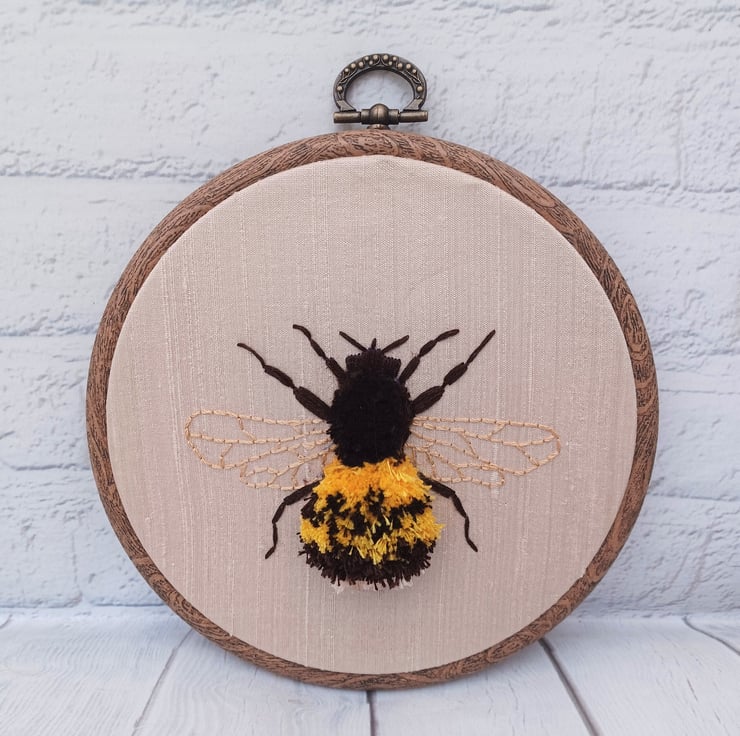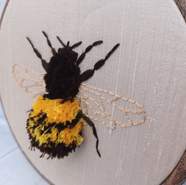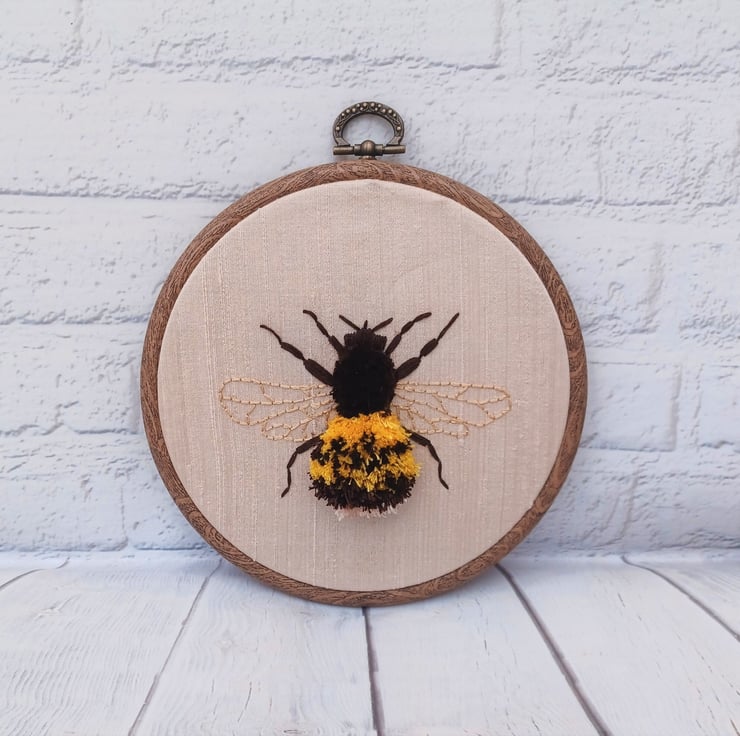 Bumblebee Embroidery, Bee Embroidery Art, 3D Bee, Stumpwork Embroidery Bee, Fuzzy Bee, Fuzzy Butt, Bee Gift, Bee Lover
