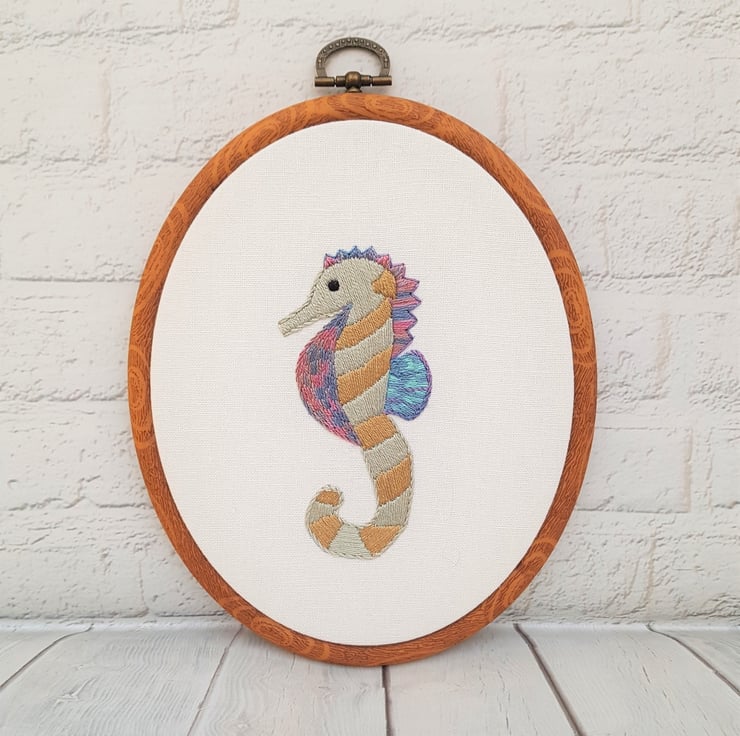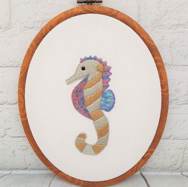 The hoop design is completely hand embroidered using silk threads on to high quality linen, and finished off with felt at the back of the frame to cover all the stitches and protect the hoop while hanging.