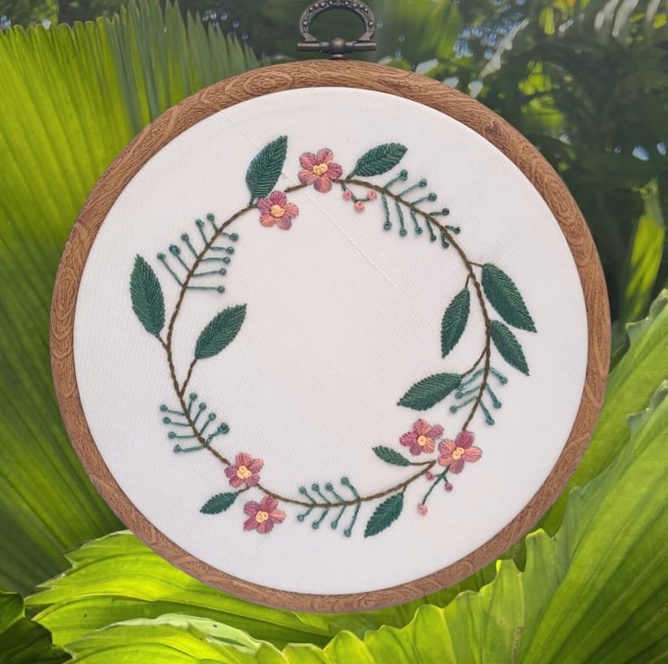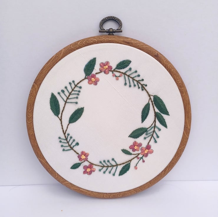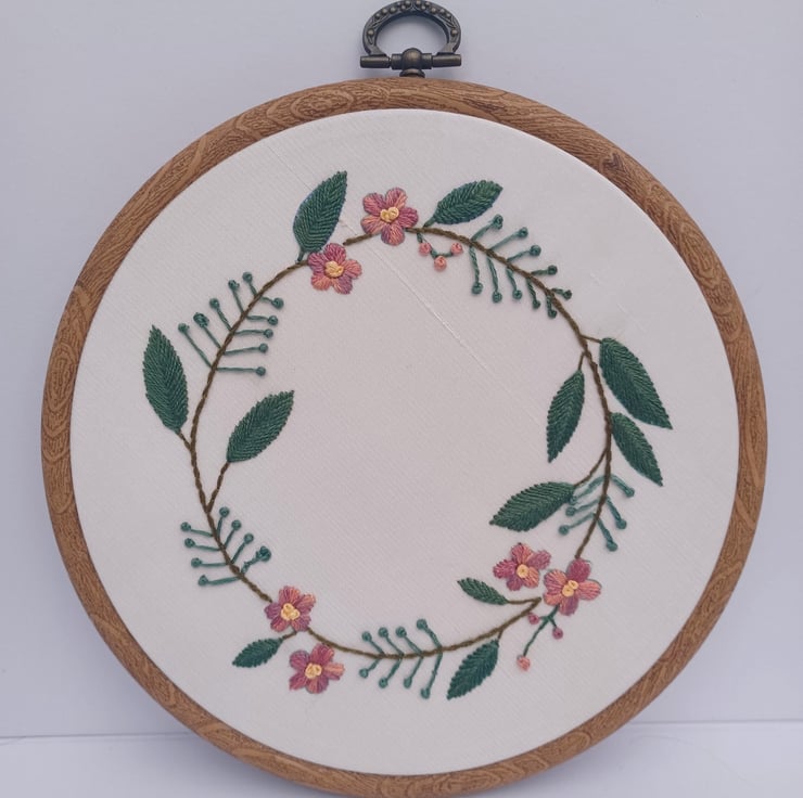 Flower Wreath Embroidery, Variegated Flower Embroidery, Embroidery Hoop, Hand Embroidery, Floral Embroidery