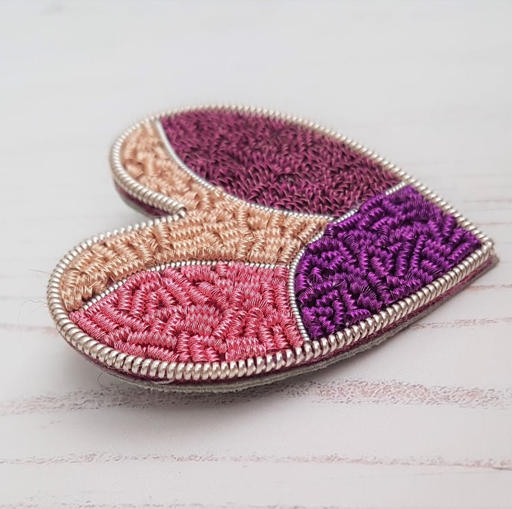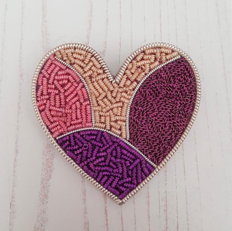 Heart Brooch, Goldwork Brooch, Beaded Brooch, Embroidered Brooch, Goldwork Heart, Embroidered Heart, Purple Heart, Heart Jewellery