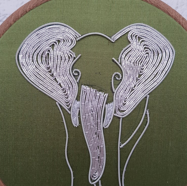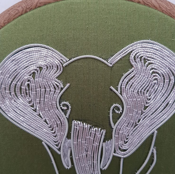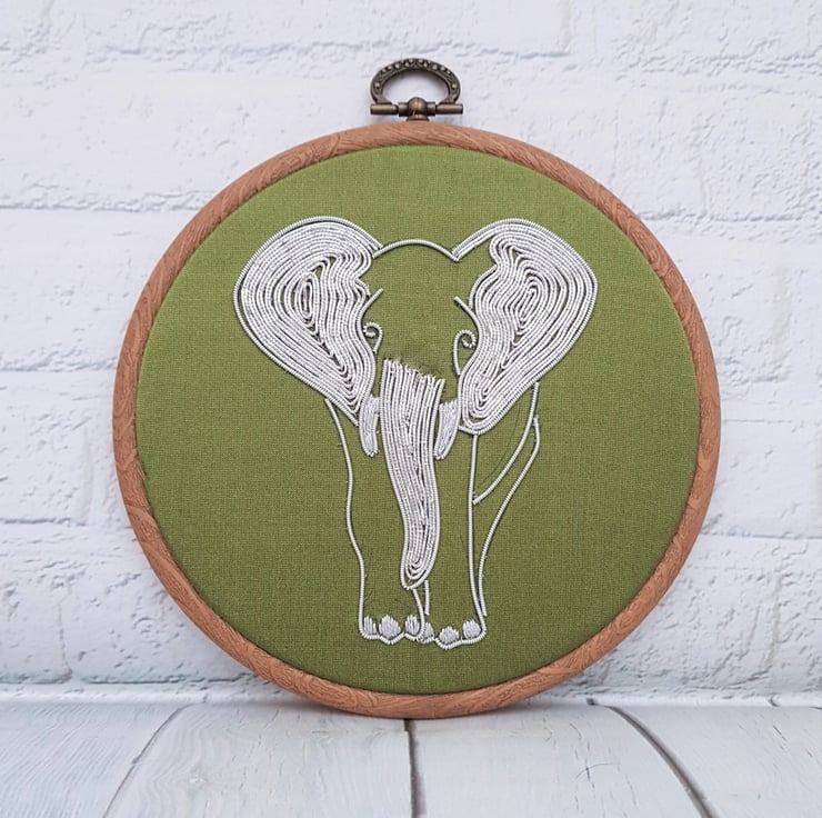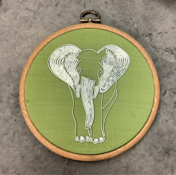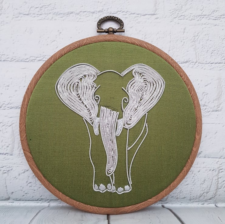 Silver Elephant Embroidery Hoop, Goldwork Embroidery Hoop Art, Elephant Gift for Nature Lovers