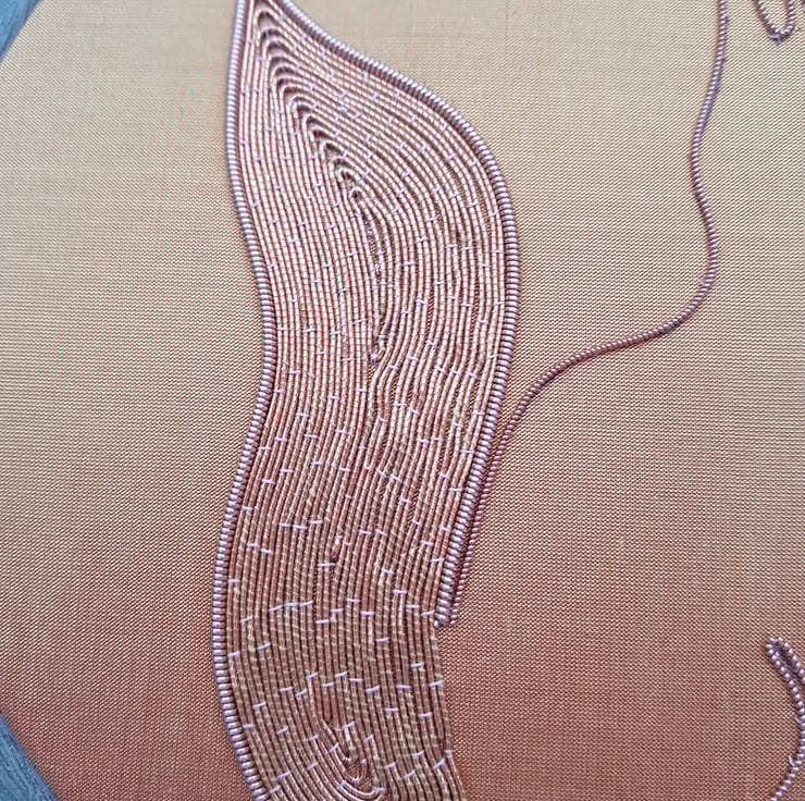 Goldwork is a traditional form of embroidery that uses different types of tiny thin wires to create different effects. Traditionally the wires were gold, but modern goldwork wires come in all the colours of the rainbow which is a lot of fun!