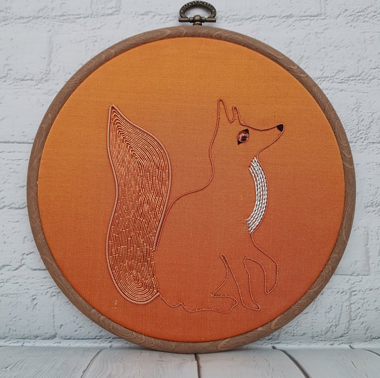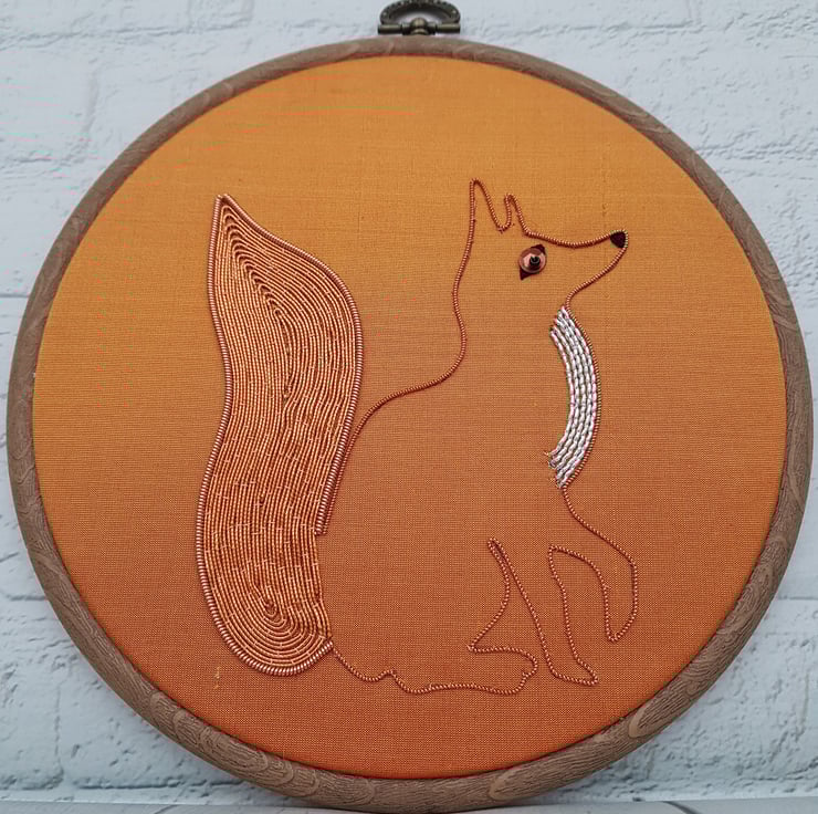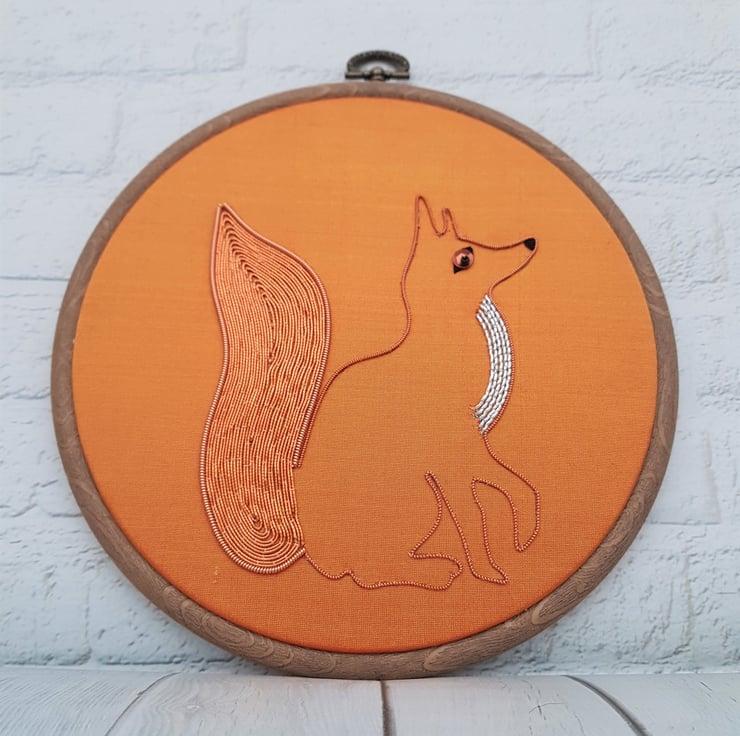 Goldwork Fox Embroidery Hoop, Fox Embroidery Gift, Fox Gift for Her, Hand Embroidery Art