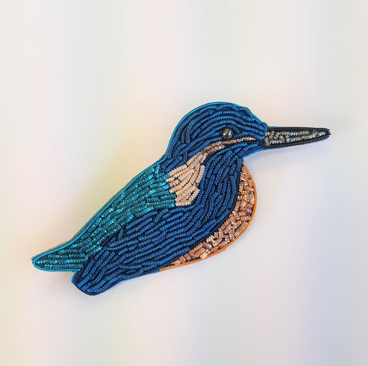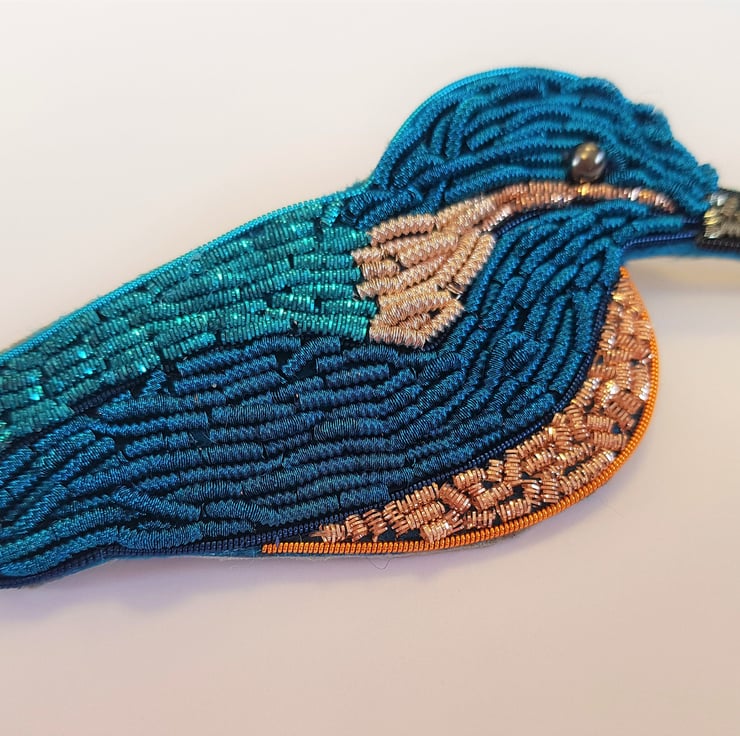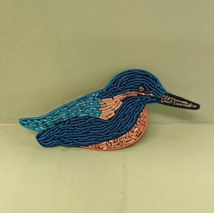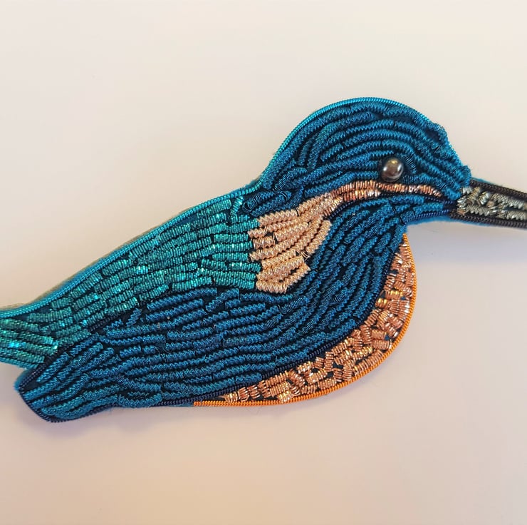 Kingfisher Brooch, Bird Jewellery, Gift for Bird Lover, Goldwork Kingfisher, Goldwork Brooch, Beaded Brooch, Embroidery Brooch,