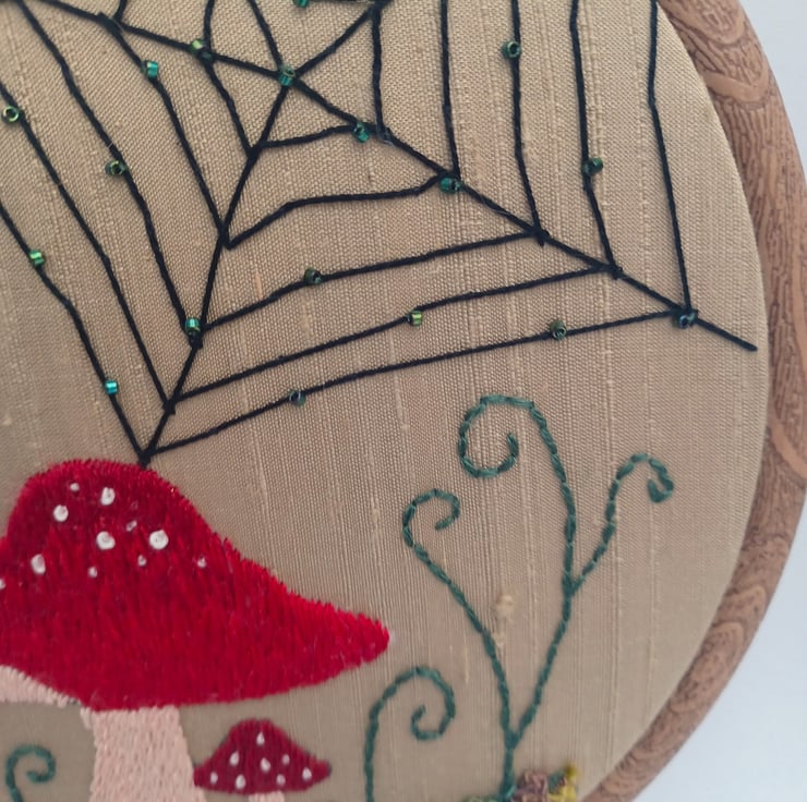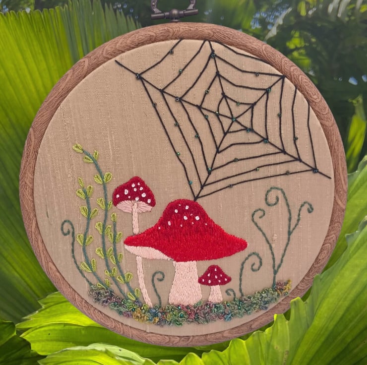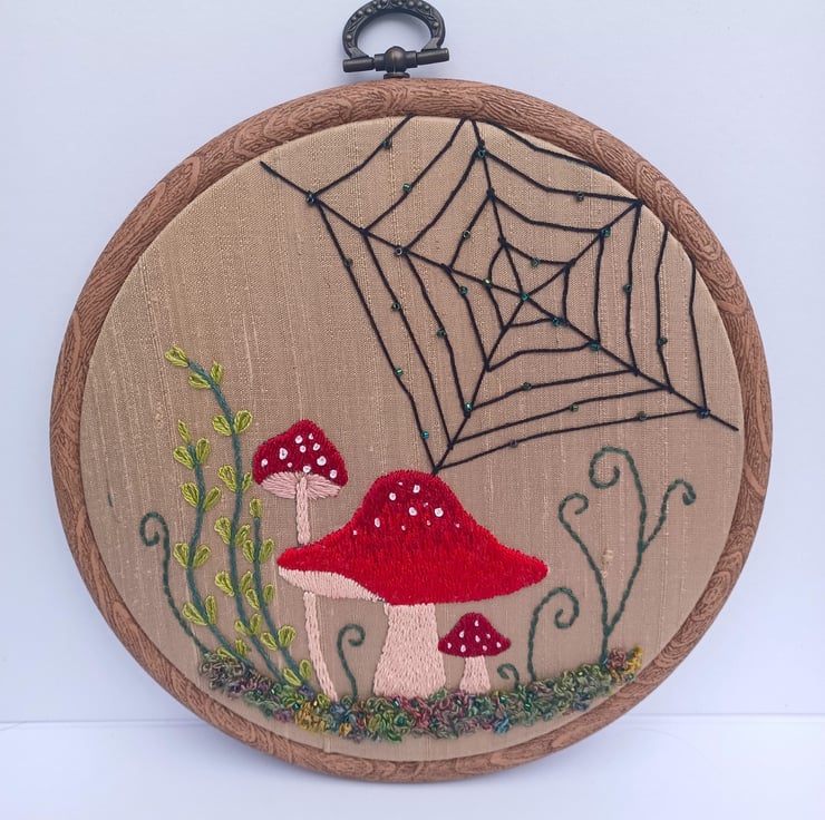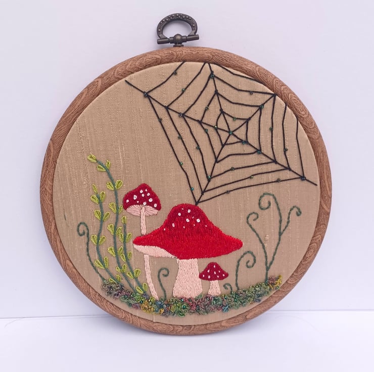 Mushroom Embroidery Hoop, Toadstool Embroidery Hoop, Spider Web Embroidery Hoop, Nature Embroidery, Hand Embroidery, Silk Thread Embroidery