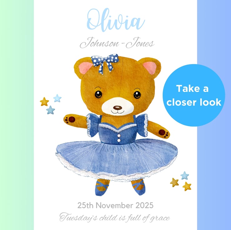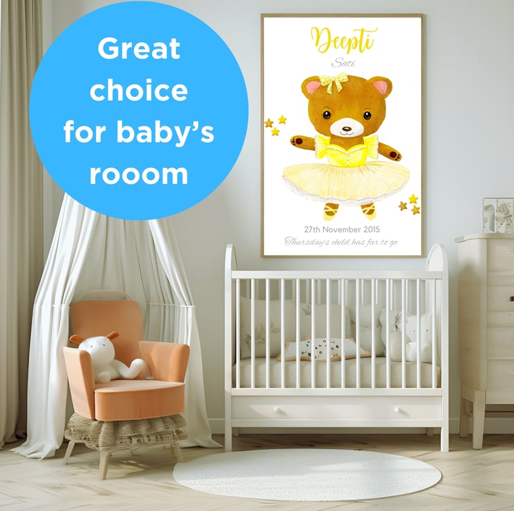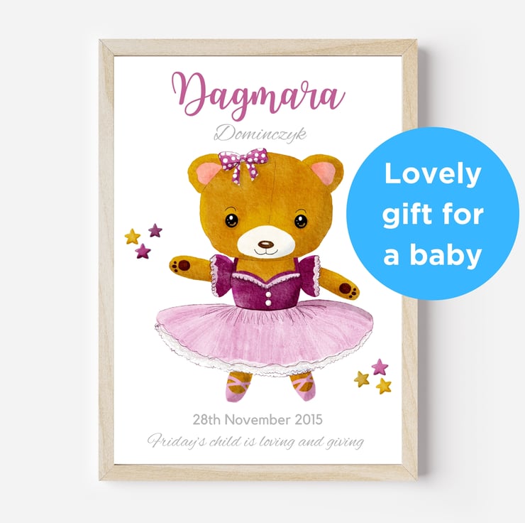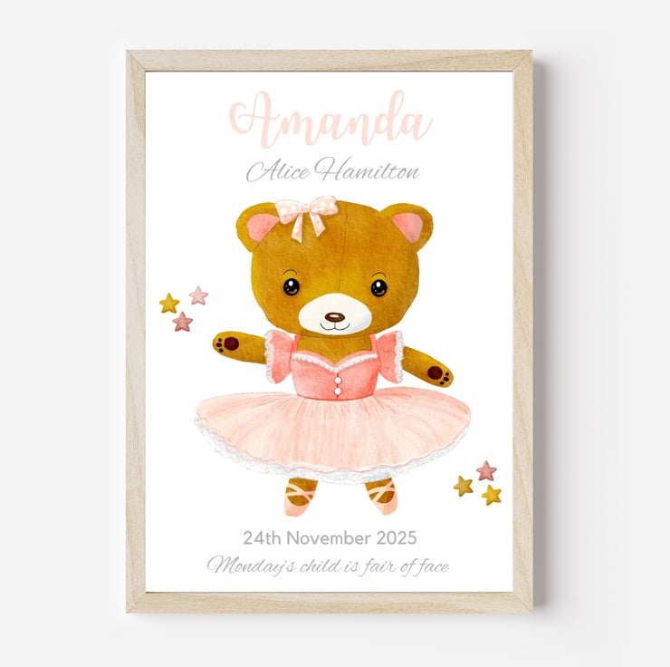 This adorable print is ideal if you're looking for a special gift for a loved one's baby, something that will be treasured for years unlike a toy that will soon be grown out of. Or perhaps you're looking for a cute keepsake to celebrate the birth of your little girl.