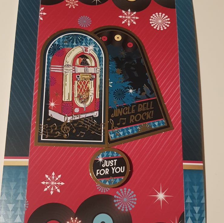 Rock & Roll Christmas card with boom box in groovy design