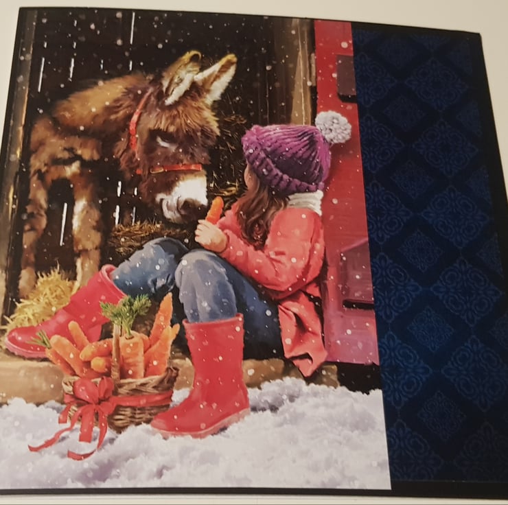 Traditional beautiful Christmas card in a cute donkey design. Perfect for any little girl