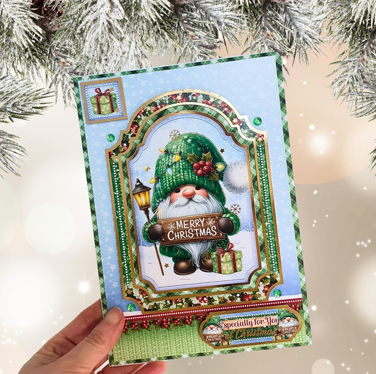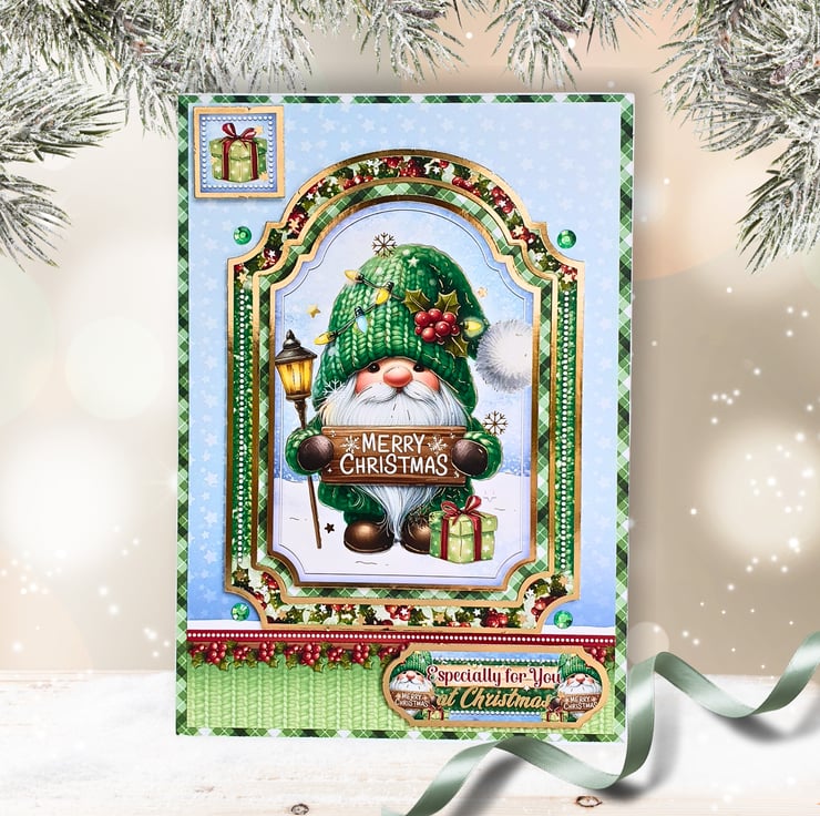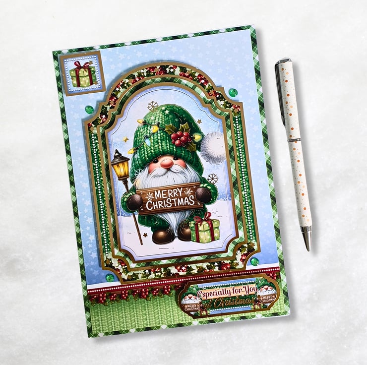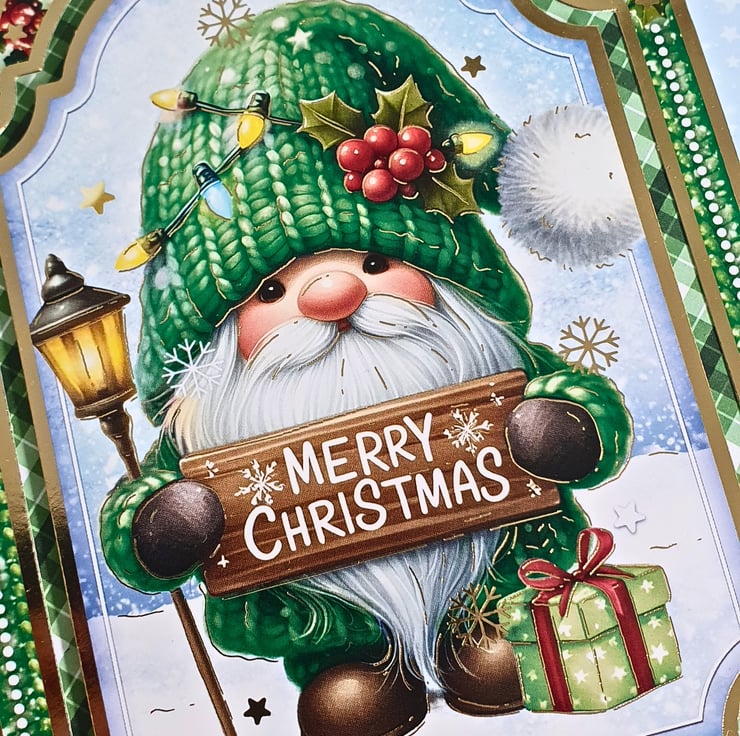 Handmade by The Sloth's Cavern, using the Hunkydory "Gnome For Christmas" Luxury Card Collection.