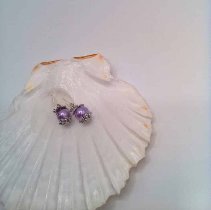 Mauve Pearl and Silver Bead Cap Necklace Bracelet and Earrings, Pearl Jewellery Gift, Pearl Necklace, Pearl Bracelet, Pearl Earrings, Accessories, Birthday Gift, Anniversary Gift, Christmas Gift, Gift for Her, Valentine Gift, Mother's Day Gift, Mauve Jewellery Set, Gift Set