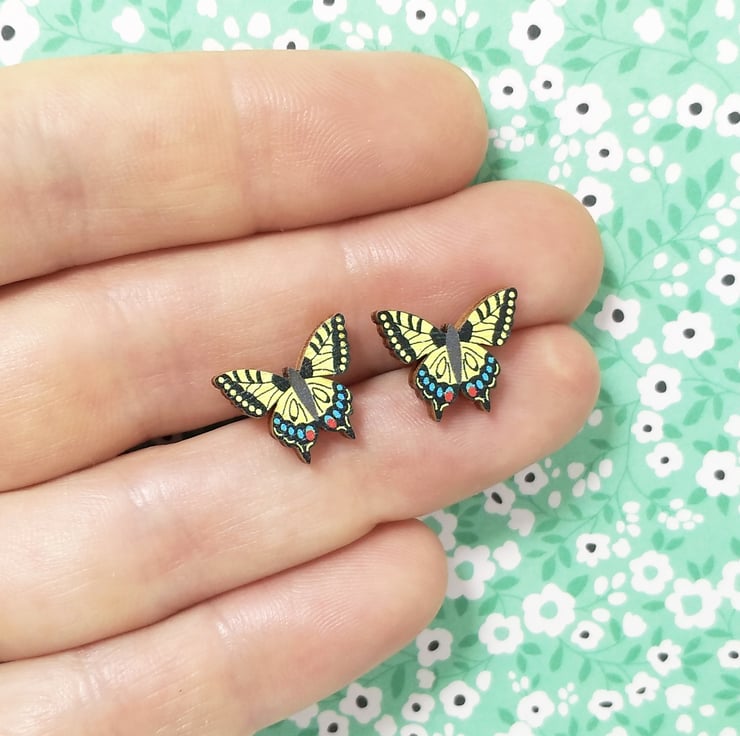 These little swallowtail earrings are designed by Carolyn and made in the UK using birch plywood from sustainable, responsibly managed woodlands.