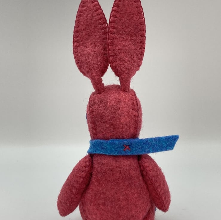 I have used raspberry heathered wool felt to make Bunny’s body which I have lovingly filled with regulation Hi-Loft polyester toy stuffing.