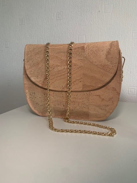 Elevate your style with this perfectly elegant Crossbody Bag. Crafted from high-quality cork material with a chic chain strap for a sophisticated touch. Perfect for all your everyday essentials. The strap is detachable inviting a variety of styling options. It's magnetic closure secures the flap and it has a spacious zip pocket at the back.